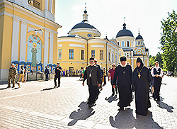 On June 15, 2018, His Eminence Archbishop Gabriel of Montreal and Canada of the Russian Orthodox Church Outside of Russia led a group of pilgrims from the USA, Canada and Australia to Pokrovsky Convent in Moscow, Russia. The delegation was greeted at the monastery gates by Abbess Feofaniya and staff members of the convent’s hostel.