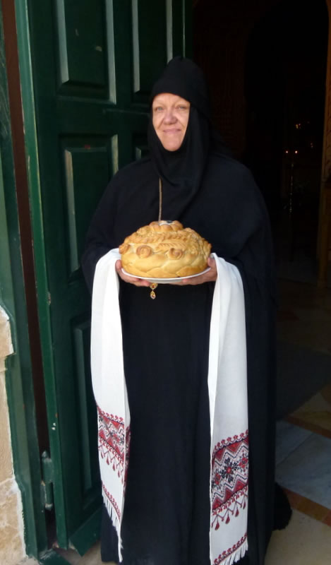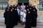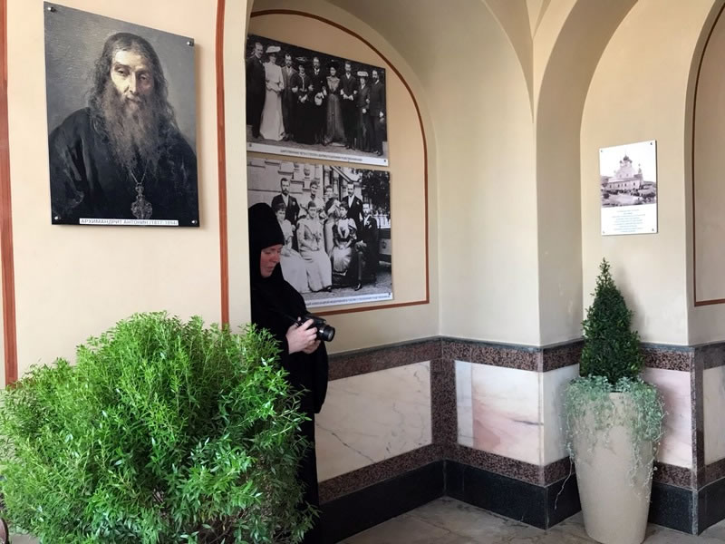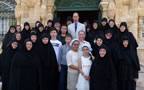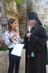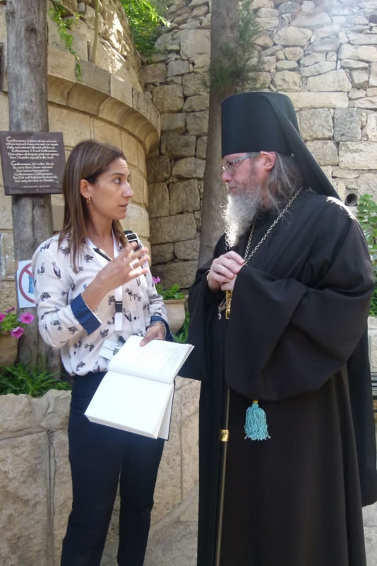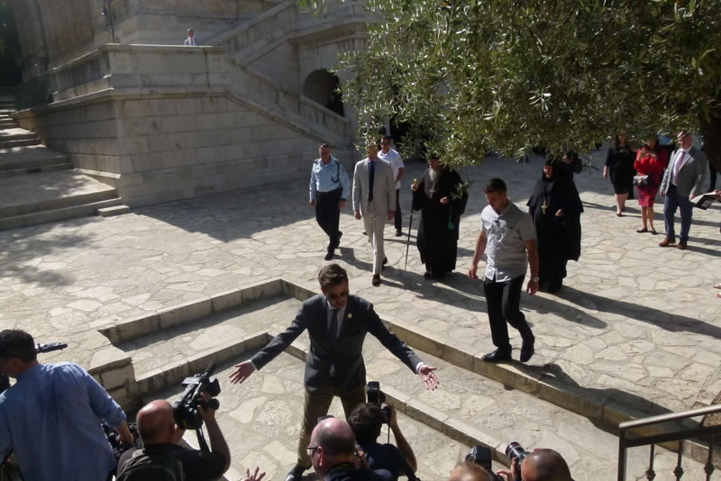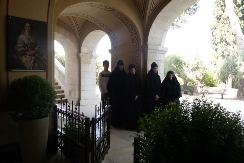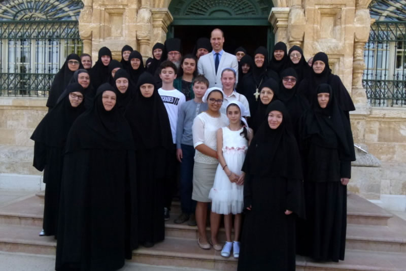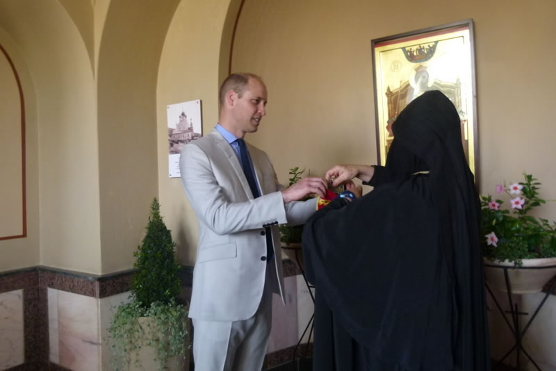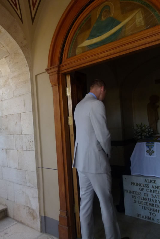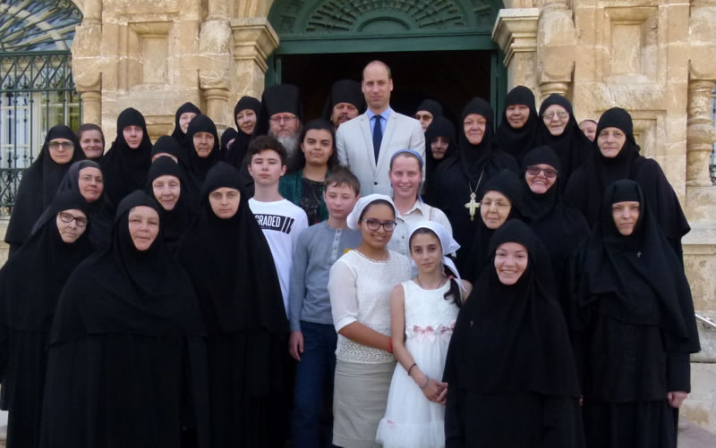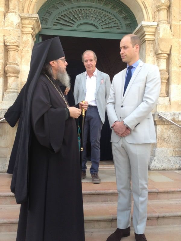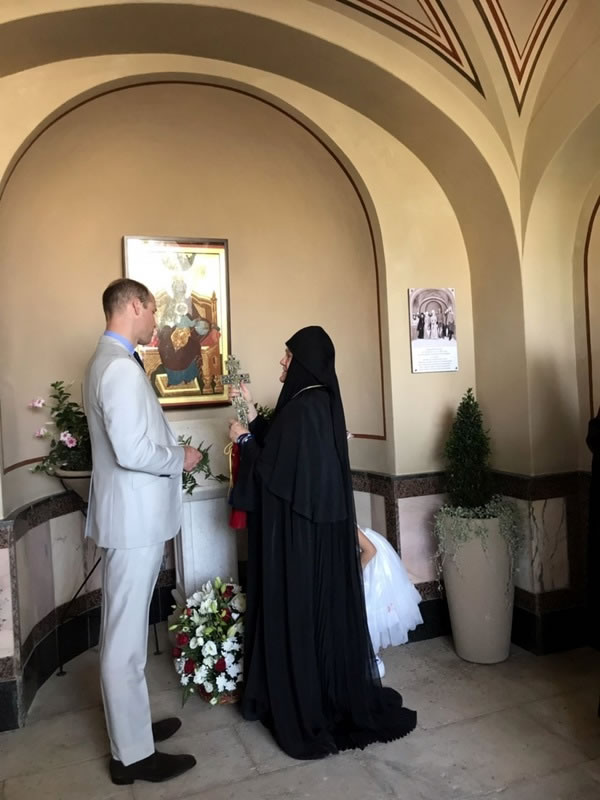 His Royal Highness was greeted at the gate of the monastery by Archimandrite Roman (Krassovsky), Chief of the Russian Ecclesiastical Mission in Jerusalem, who escorted Prince William into the church. On the terrace before the church, Fr Roman pointed out the holy places of the old city of Jerusalem seen from there. Abbess Elisabeth (Smelic) greeted him with the traditional bread and salt.