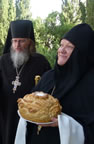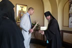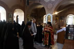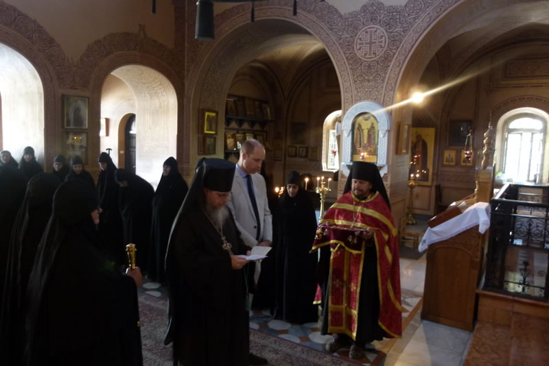 The high guest entered the church with the nuns singing the troparion of St Mary. The head of the REM intoned petitions for the health of Her Majesty Queen Elizabeth, His Royal Highness Prince William and for the Royal House of Windsor. Afterwards he intoned Many Years.