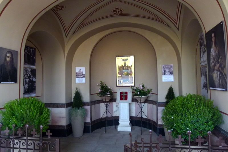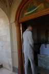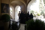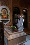 The Prince proceeded to the crypt of his paternal great-grandmother, Princess Alice. Fr Roman intoned a memorial litiya for the Princess and sang Eternal Memory. His Royal Highness was left alone for private prayer at the coffin. Afterwards, one of the girls from the convent's affiliated Orthodox Bethany School presented flowers.