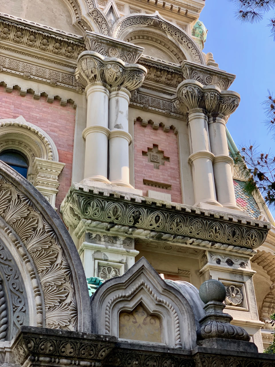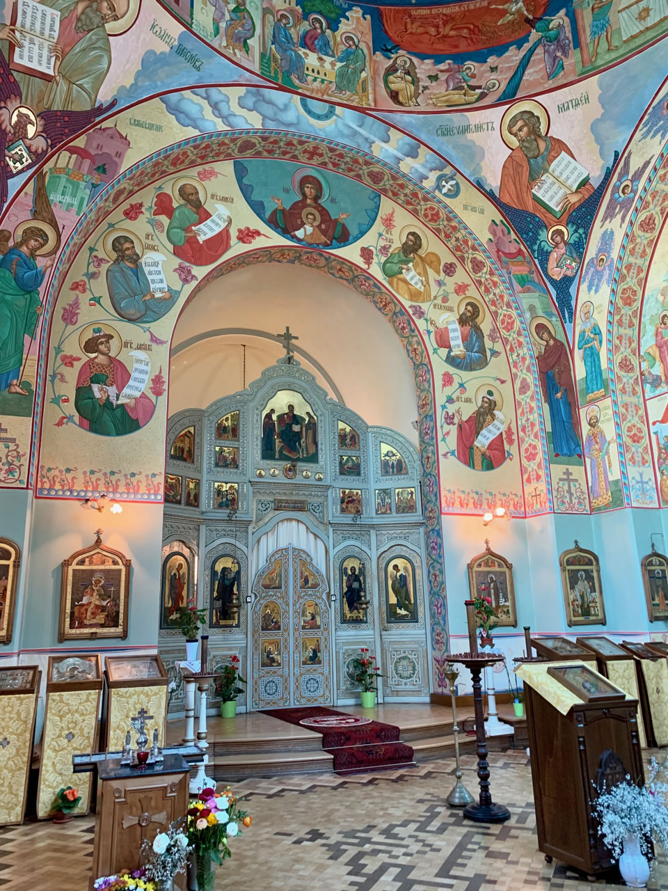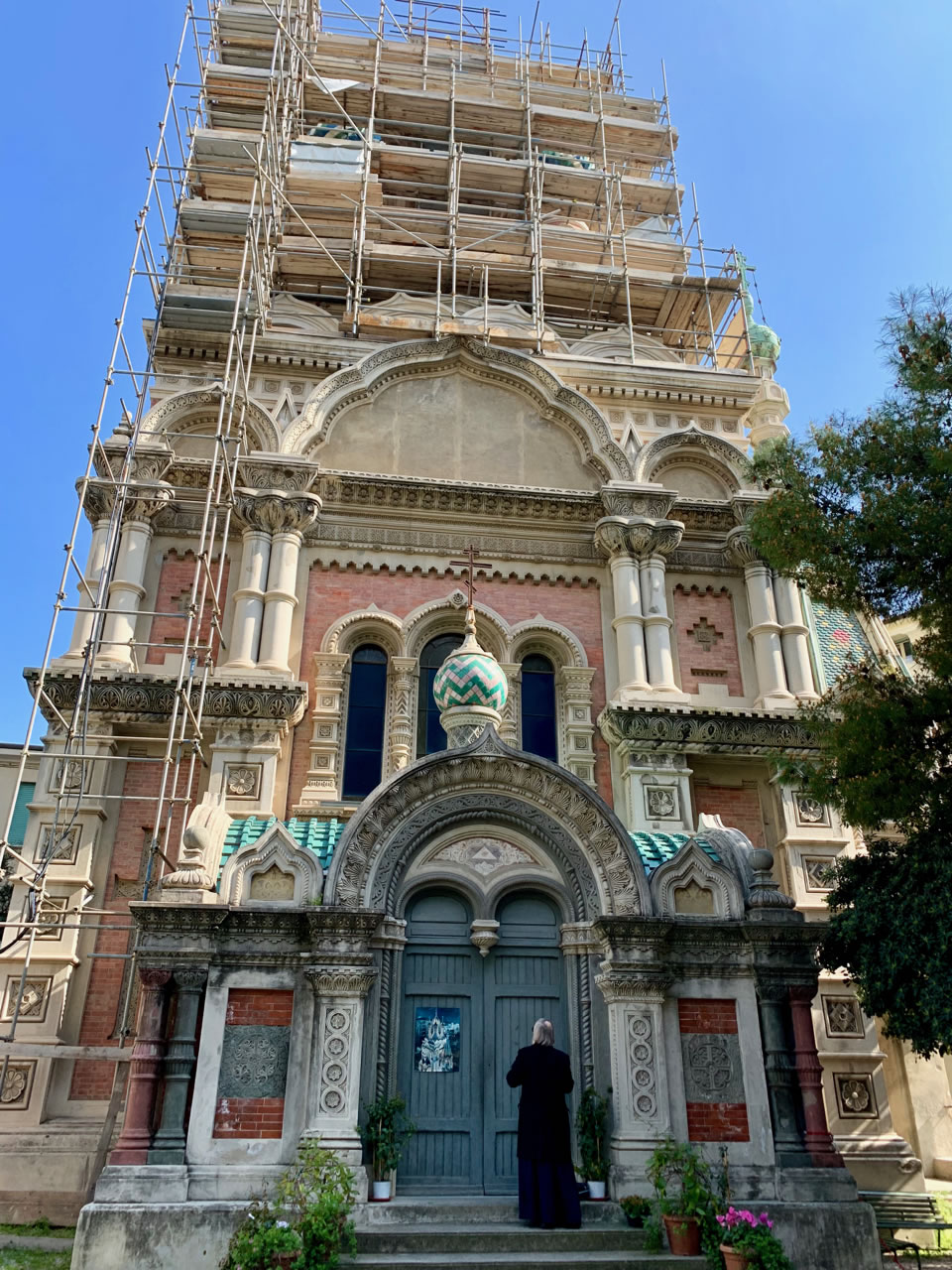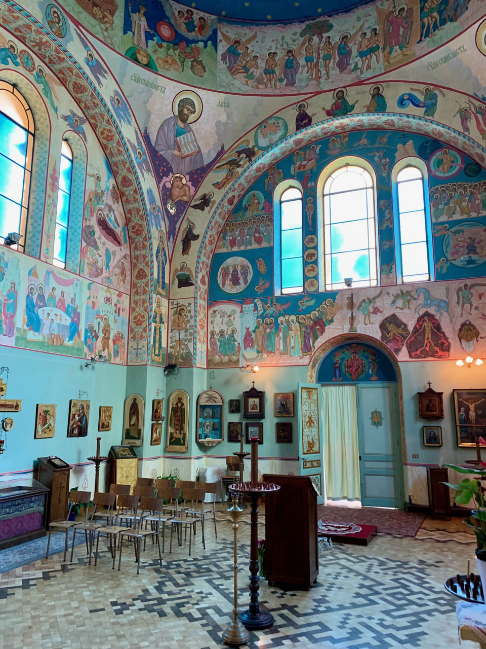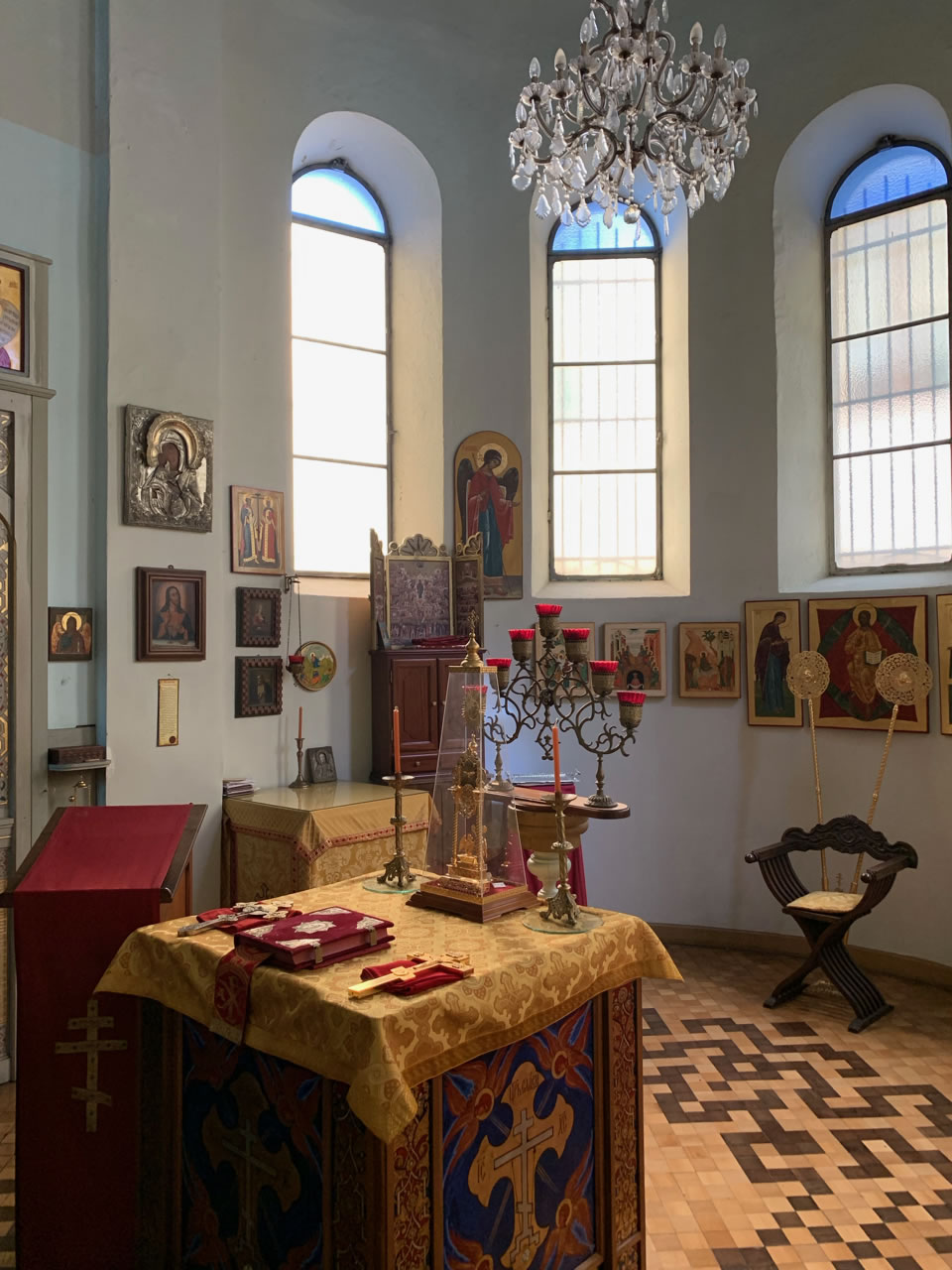 The history of the Sanremo church dates to the time of Tsarina Maria Alexandrovna, who loved to spend time in the city and after whom one of its popular streets is named (Passeggiata Imperatrice, “Empress Walk”), who herself declared a church should be built here — though it would not be completed until three decades after her repose. In 1890, the Grand Duke Sergei Mikhailovich, who also lived in Sanremo, initiated his support of the cause, and in 1910 he instituted the church’s construction committee under an authorizing decree from Tsar St Nicholas II. The Emperor not only authorized collections to be taken for the construction of the church, but was personally one of its main benefactors. The building was designed by architects AV Shchusev and P Agosti in the style of 17th-century Moscow temples, and the church was consecrated on December 10, 1913, dedicated to Christ the Savior, with an additional dedication to the Venerable St Seraphim of Sarov.