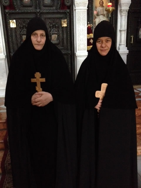 On Friday evening, the eve of the Laudation of the Most-Holy Mother of God, after matins and an akathist at St Mary Magdalene Church in Gethsemane, Archbishop Mark tonsured Nun Martha (Wall) and Nun Lukia (Orlova). Sr Martha was given the name Maria in honor of the other sister of St Lazarus of the Four-Day Resurrection, and Sr Lukia was given the name Evdokia in honor of the Holy Princess of Moscow. Mother Maria conducts her obedience at Russian Gethsemane Convent and the Community of the Resurrection of Christ in Bethany, where she is the Senior, and operates the Orthodox Bethany School for girls. Mother Evdokia bakes the prosphoras in Gethsemane.