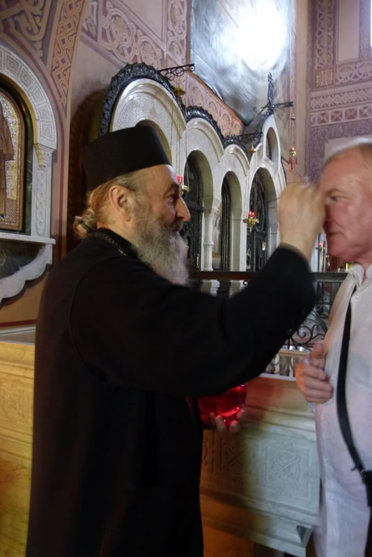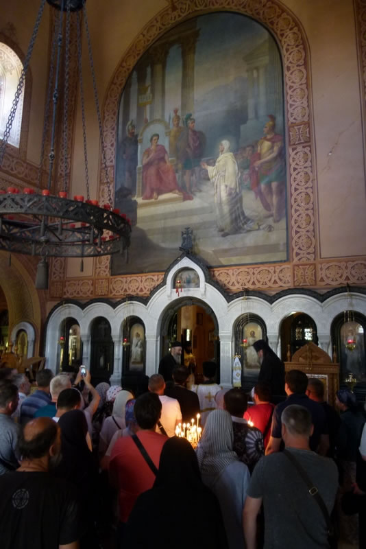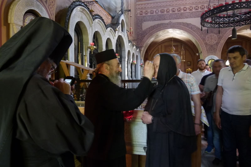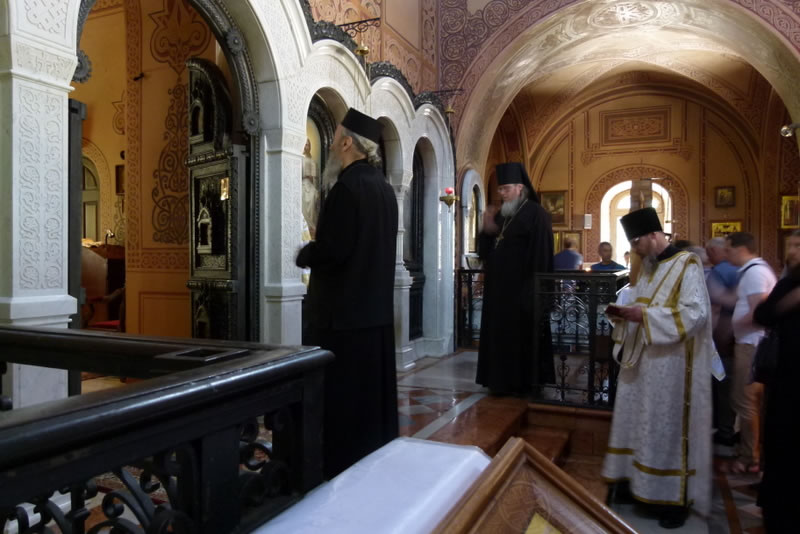 The Primate of the Ukrainian Orthodox Church expressed his profound gratitude for the prayers and support, wishing the monastics patience and heavenly aid in their difficult labors in the Holy Land. As they venerated the relics of Holy Grand Duchess Elizabeth and Nun Barbara, His Eminence anointed his fellow-travelers with oil from the lampadas which perpetually burn at their reliquary.
