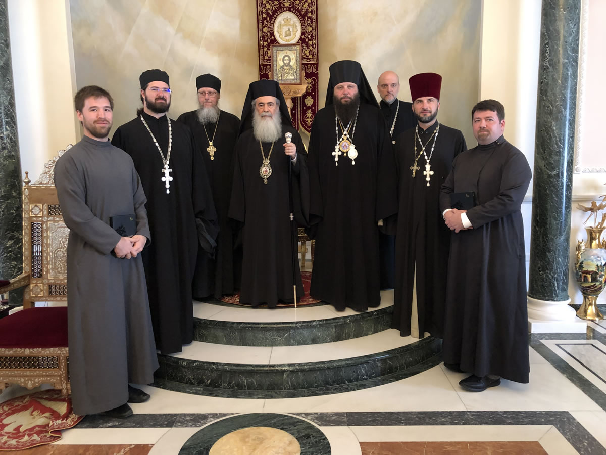 Pilgrims of the Russian Church Abroad led by Bishop Nicholas of Manhattan received by His Beatitude Patriarch Theophilos III of Jerusalem