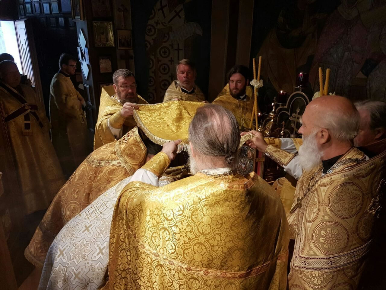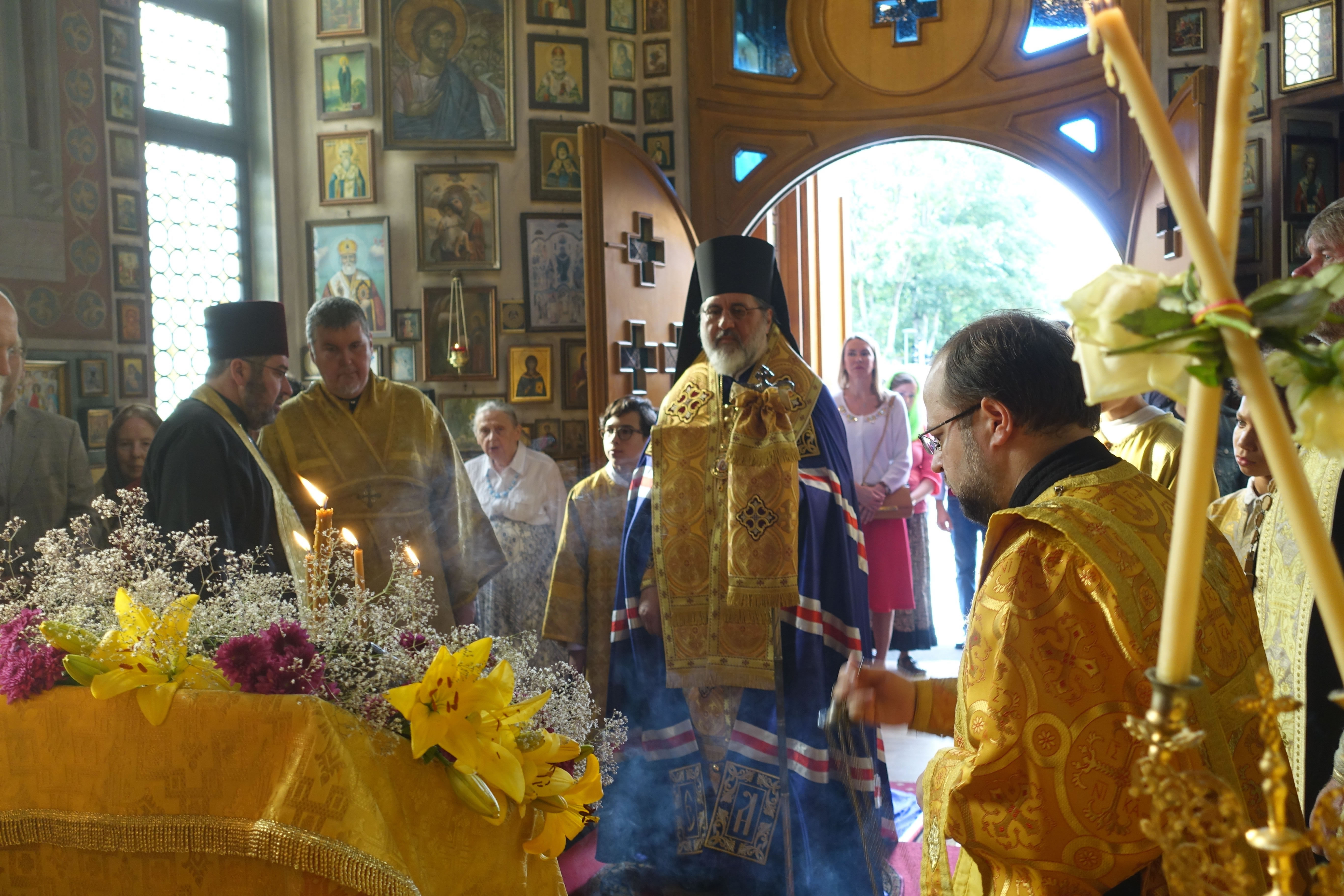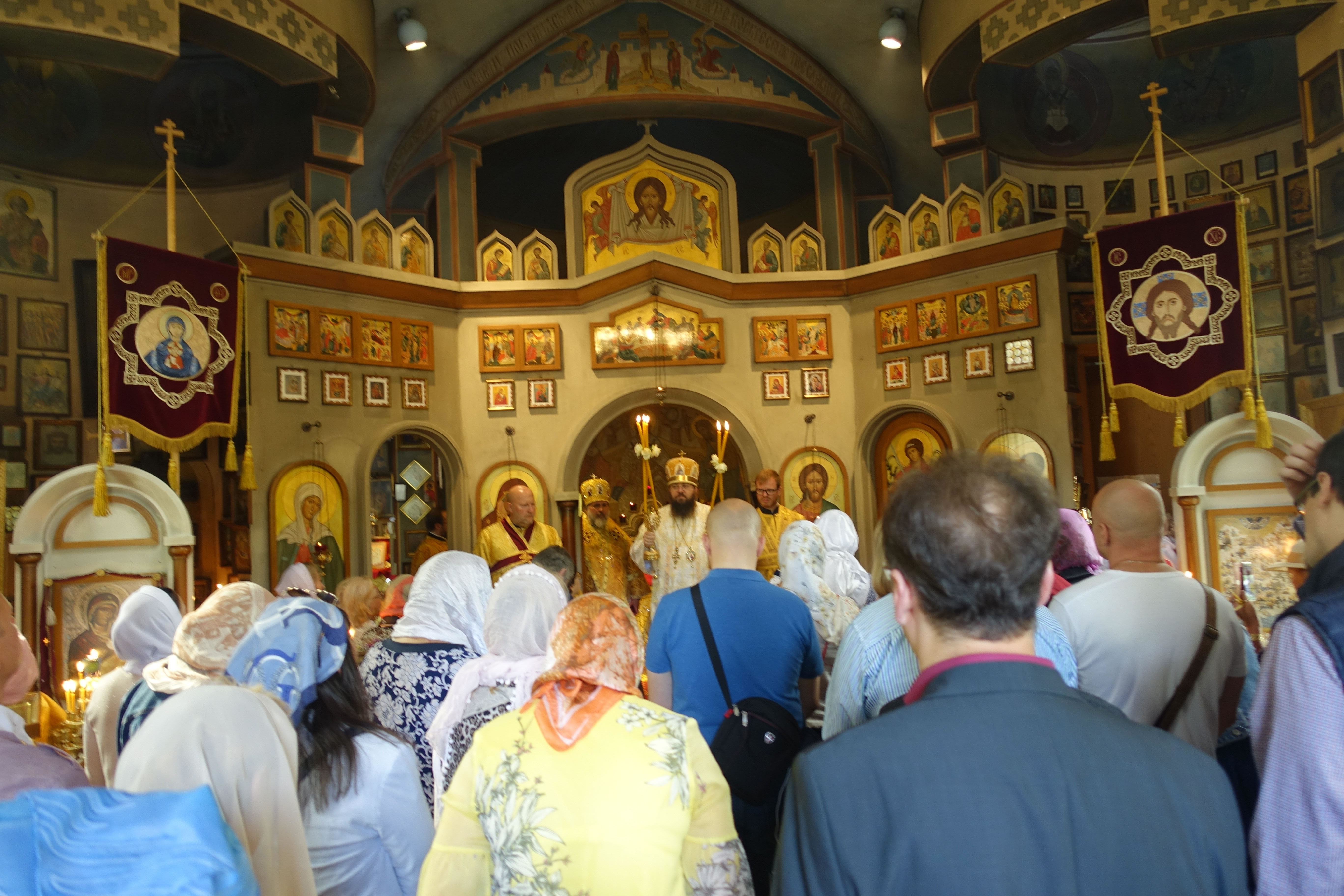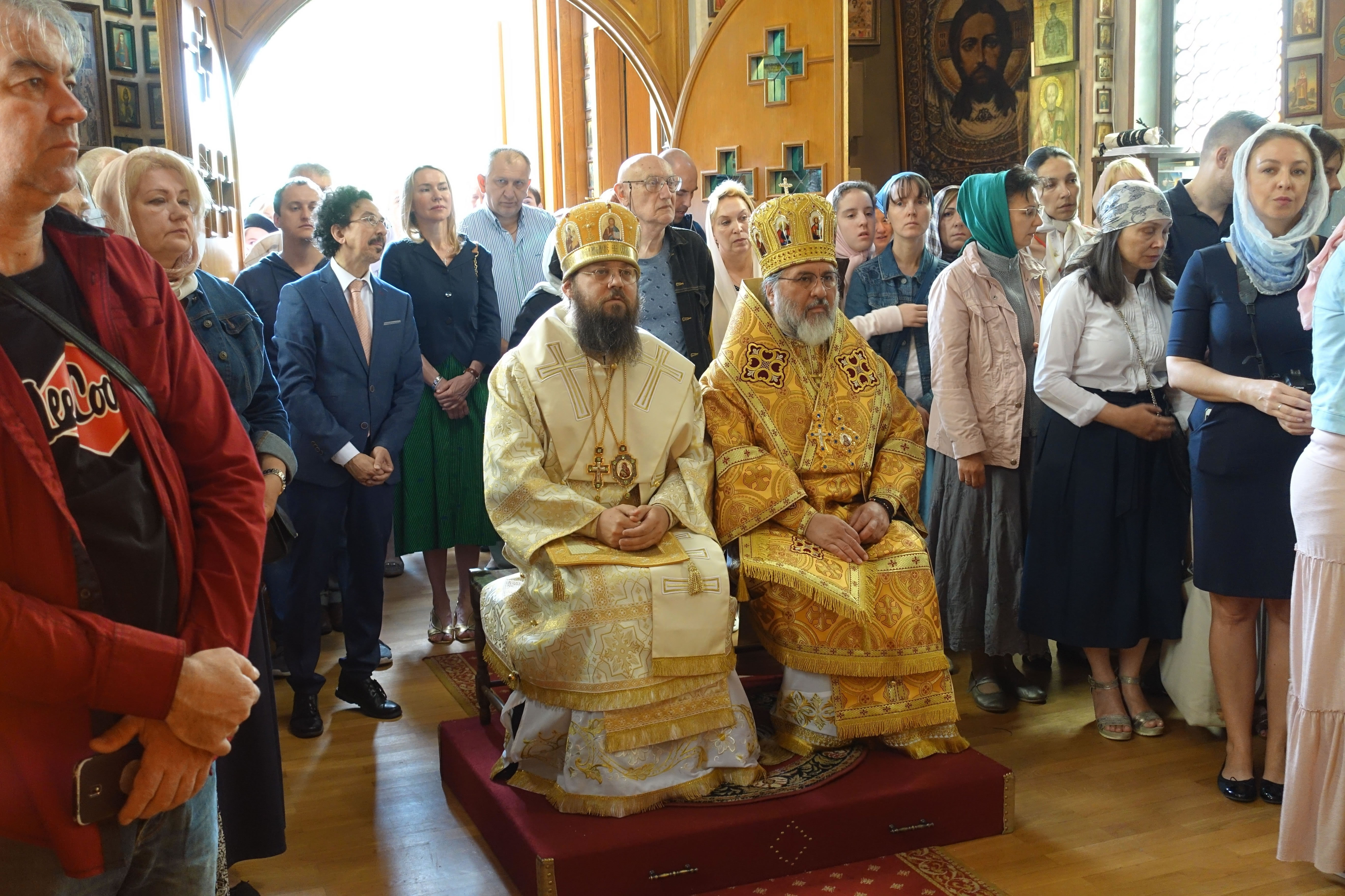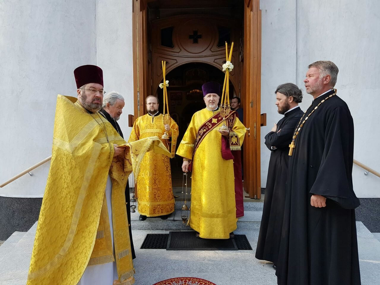 On Friday, July 12, 2019, SS Peter and Paul Church in Luxembourg celebrated its 90th anniversary. Heading divine services was His Grace Bishop Irenei of London and Western Europe along with His Grace Bishop Alexander of Vevey, Vicar of the Western European Diocese, and a host of clergymen from France, Switzerland and the USA, and attended by a large gathering of local and visiting worshipers. During the minor entrance of Divine Liturgy, Priest George Machtalere, parish rector, was granted by the Synod of Bishops the right to wear the gold pectoral cross.