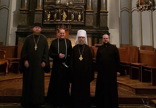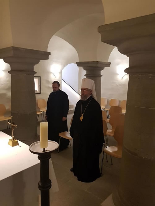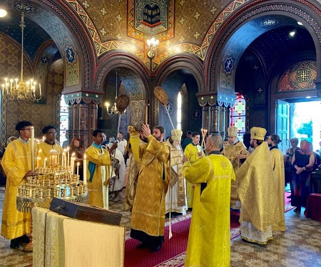 On Sunday, September 15, 2019, the 13th Sunday after Pentecost, His Eminence Metropolitan Avgustin of Belotserkovsk and Boguslavsk, head of the Theological-Canonical Commission of the Ukrainian Orthodox Church, during a pilgrimage to Western Europe, visited Elevation of the Cross Cathedral of the Russian Orthodox Church Outside of Russia in Geneva, Switzerland. At the invitation of His Grace Bishop Irenei of London and Western Europe, Metropolitan Avgustin led all-night vigil and officiated at Divine Liturgy. His Eminence was joined by Archimandrite Avgustin (Morozov), who came from Italy, and the cathedral’s own Protopriest Pavel Tsvetkoff and Protopriest Emelian Pocinoc.