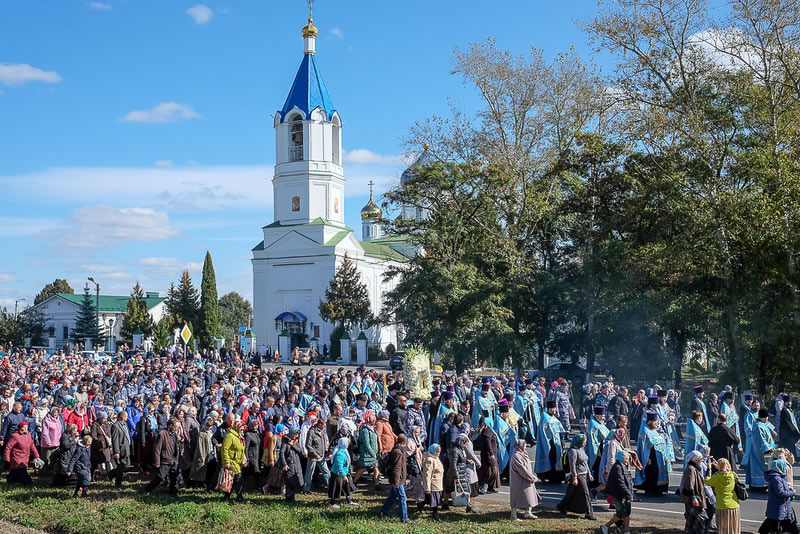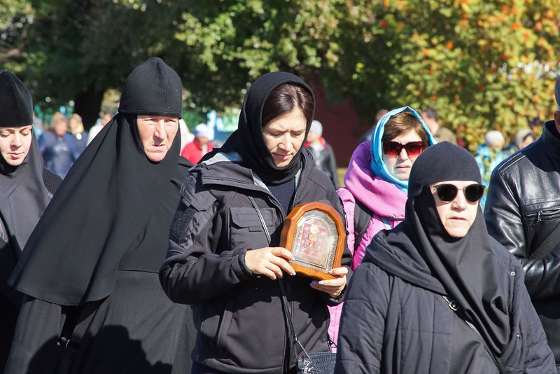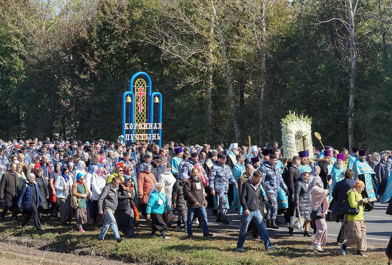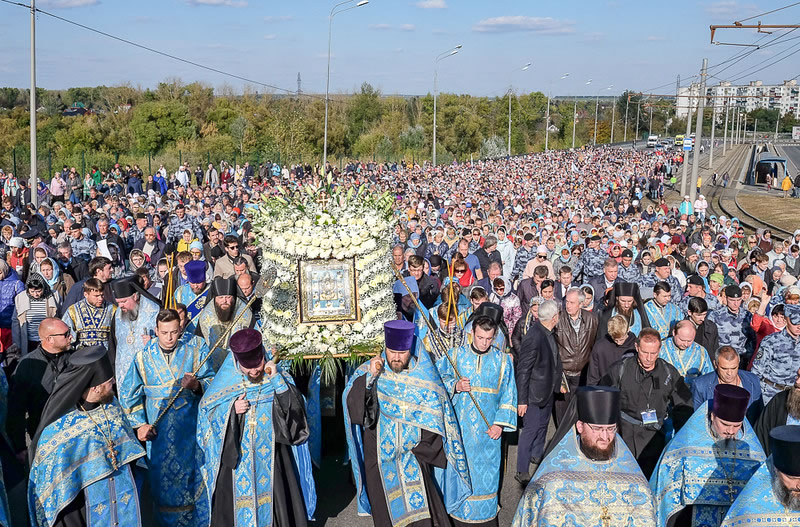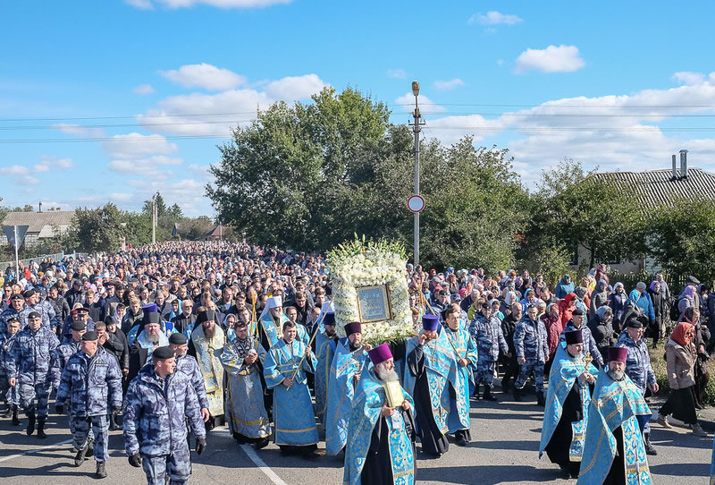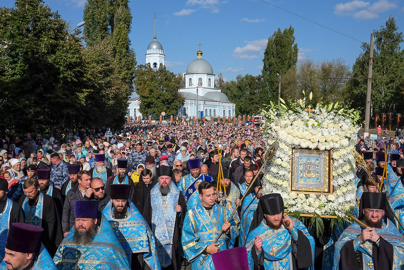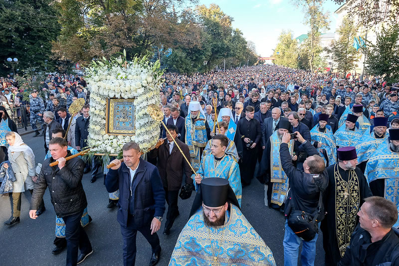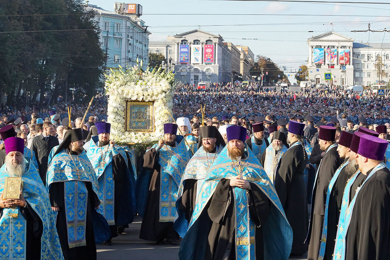 On the Apodosis of the Nativity of the Most-Holy Mother of God, September 25, 2019, the traditional procession of the cross was held with the Kursk-Root Icon of the Mother of God "of the Sign,” starting at Kursk-Root Hermitage and ending at Znamensky Monastery in Kursk, Russia.