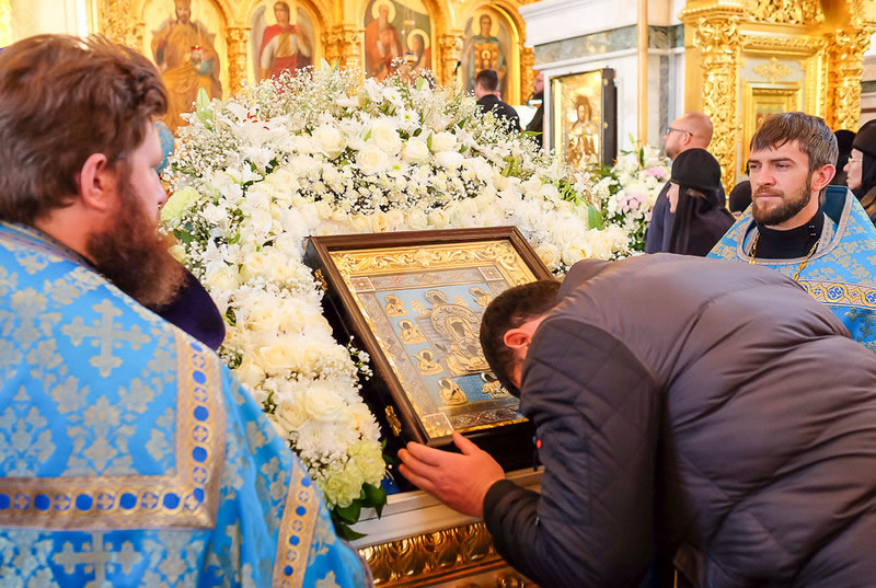 The Kursk-Root Icon will remain in Kursk until October 3, at Znamensky Cathedral, where prayer services will be held throughout each day, and access to the icon provided on a round-the-clock basis. On October 1, Metropolitan German will visit medical centers of Kursk, and on October 3, the icon will be taken to Zheleznogorsk Diocese, and then on to Kazakhstan, where the 15th anniversary of the completion of the Cathedral of the Holy New Martyrs and Confessors of Russia will be celebrated, along with the 20th anniversary of the establishment of the Diocese of Astana and Almaty.