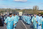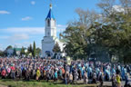 After many years of “wandering” throughout the world, the miracle-working Kursk-Root Icon of the Mother of God "of the Sign" made a return visit to the Kursk-Root Hermitage in 2009, ten years ago. Now, every year, with the blessing of His Holiness Patriarch Kirill of Moscow and All Russia and His Eminence Metropolitan Hilarion of Eastern America and New York, First Hierarch of the Russian Orthodox Church Outside of Russia, the icon visits the site of its discovery in 1295. This year, the icon was ceremoniously greeted on September 20; His Eminence Metropolitan German of Kursk and Rylsk celebrated Divine Liturgy along with His Eminence Metropolitan Ioann of Belgorod and Stary Oskol; His Grace Bishop Nicholas of Manhattan of ROCOR; His Grace Bishop Veniamin of Zheleznogorsk and Lgov; His Grace Bishop Paisy of Shchigry and Manturovo and a multitude of clergymen.