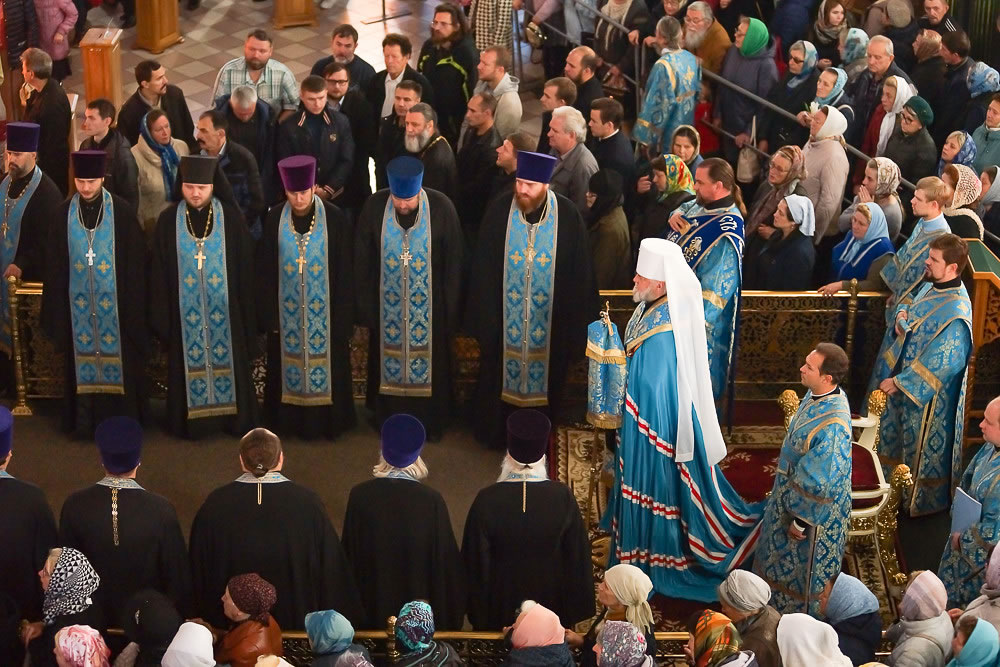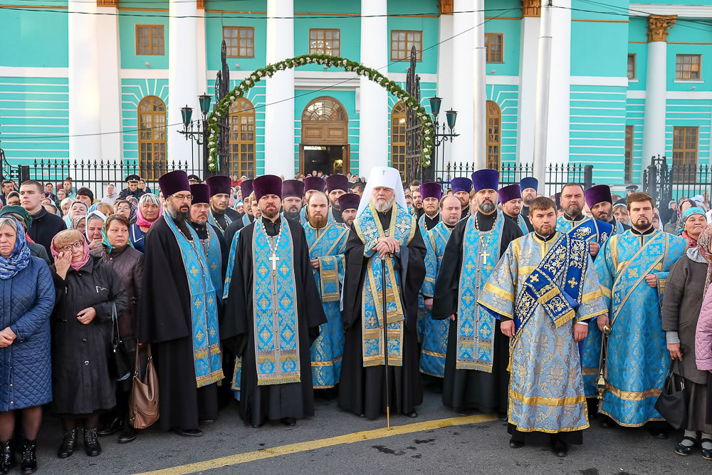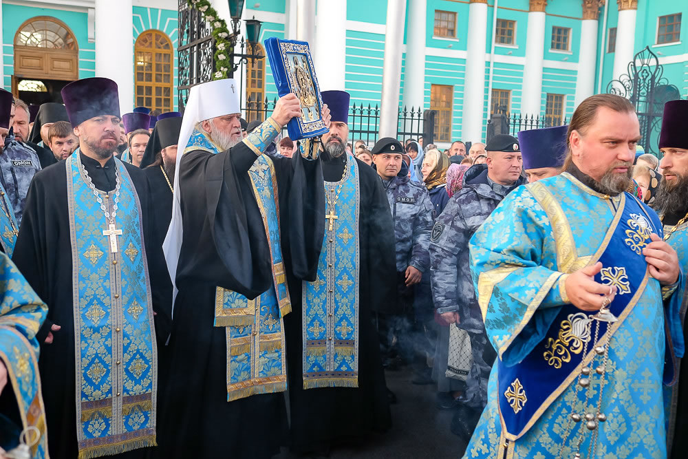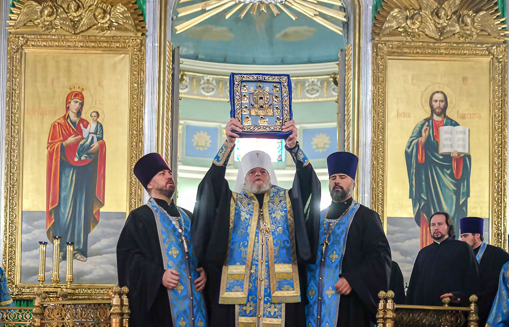 On the morning of October 3, 2019, the people of the city of Kursk, Russia, bid farewell to the visiting Kursk-Root Icon of the Mother of God "of the Sign.” His Eminence Metropolitan German of Kursk and Rylsk headed moleben services before the miracle-working icon at Znamensky Cathedral, and was joined by his diocesan clergymen.