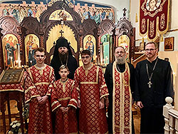 Upon arrival in the Belgian capital on Friday evening, 26 October/8 November, Bishop Irenei led the evening service in honor of the Holy Martyr St Nestor in Resurrection Parish, where on Saturday morning he celebrated Divine Liturgy for the saint. His Grace was co-served by the rector, Archpriest Stefan Veerts, together with Priest Rafael Kommers, visiting from Dordrecht in the Netherlands, as well as Deacon Vladimir Svistun, a cleric of the Geneva Cathedral. At the Sixth Hour, Mr John Andersen, long-time warden of the Amsterdam parish of St Mary of Egypt, was tonsured to the rank of reader.