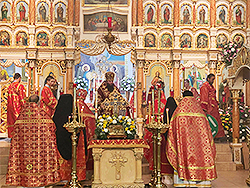 Serving alongside His Grace at all-night vigil on Monday evening were: parish rector Archpriest John Sorochka, Archpriest David Hritcko (rector of St Basil the Great Church in Simpson, PA), Hieromonk Anatoly (Zilin) and Priest Daniel Franzen (clerics of Holy Trinity Monastery in Jordanville, NY), Priest George Sharonoff (rector of St. John the Wonderworker Mission in Lewisburg, PA), and Deacons Nathaniel Sorochka (cathedral cleric), Dimitri Krenitsky (cleric of the Hermitage of the Holy Protection in Buena, NJ), and Michael Pavuk (cathedral cleric).