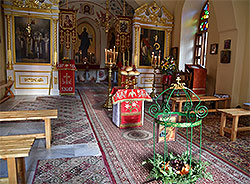 Celebrating the feast of the Beheading of St. John, Archimandrite Roman (Krassovsky), Chief of the Russian Ecclesiastical Mission in Jerusalem, served in the chapel of the Finding of the Head of the Forerunner built upon the place where the Baptist’s righteous head was buried. Archimandrite Vasily (Druzhinets), Archimandrite Innokenty (Sereda) and Deacon Vyacheslav Batalsky co-served with Fr Roman. Abbess Barbara (Novikova) prayed along with the sisters of the convent. Many pilgrims received Holy Communion at the service. After Divine Liturgy, as is prescribed by the Typicon, a panihida was served for all orthodox christian officers and soldiers who gave their lives on the field of battle