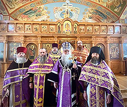 On the feast day of the Triumph of Orthodoxy, His Eminence Archbishop Peter of Chicago and Mid-America presided at the Divine Services at the diocesan Cathedral of the Protection of the Mother of God in Des Plaines, IL. At the Divine Liturgy Hieromonk Nektary (Merry) was elevated to Igumen and Priest Daniel Marshall was elevated to Archpriest. Deacon Nicholas Olsen was ordained priest for service at All Saints of North America parish in DeQueen, Arkansas. Following the Divine Liturgy Archbishop Peter led the Rite of Orthodoxy, which is served only by ruling hierarchs in their diocesan cathedrals on this first Sunday of the Great Fast. We congratulate all on the feast of the Triumph of Orthodoxy, as well as Igumen Nektary, Archpriest Daniel, and the newly-ordained Priest Nicholas.