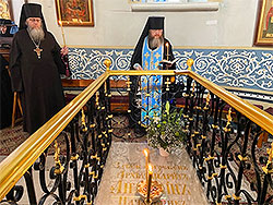 Abbot Iona (Galishnikov) served the pannikhida. The current Chief of the Mission, Archimandrite Roman (Krassovsky) prayed at the memorial service along with Abbess Barbara (Novikova) and the sisters of the convent.