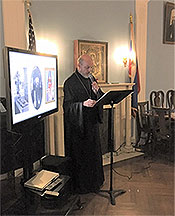 On Sunday, October 31, with the blessing of Metropolitan Hilarion of Eastern America & New York, First Hierarch of the Russian Church Abroad, Bishop Nicholas of Manhattan invited everyone interested in the history of the fatherland to listen and take part in the discussion of the lecture by Archpriest Serafim Gan entitled, "The Glorification of Saints in the Russian Church Abroad," which he prepared on the occasion of the 40th anniversary of the glorification of the Holy New Martyrs and Confessors of Russia and the 25th anniversary of the glorification of Holy Wonderworker Jonah (Pokrovsky), Bishop of Hankou. The event took place at the Synodal Headquarters in New York City.
