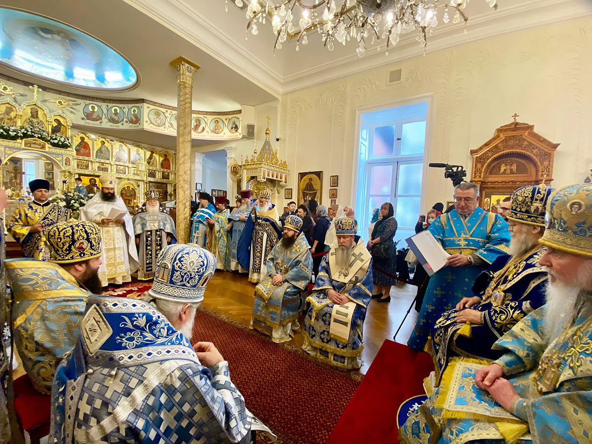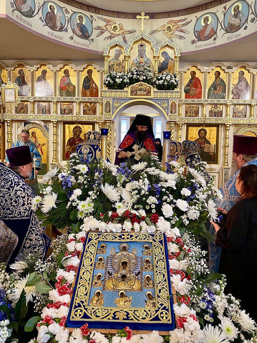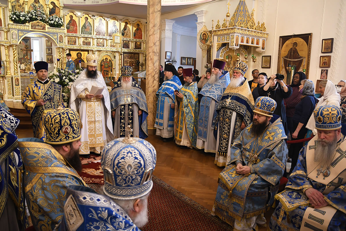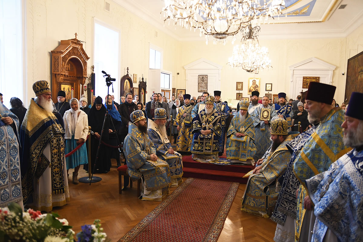 The festal Liturgy was simultaneously held under the aegis of two sacred icons: the Protectress of the Russian Diaspora – the Kursk Root Icon of the other of God – and the myrrh-streaming icon "Softener of Evil Hearts" from Moscow.