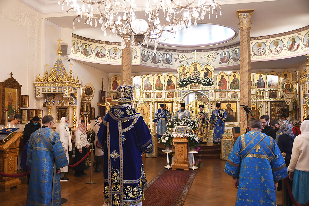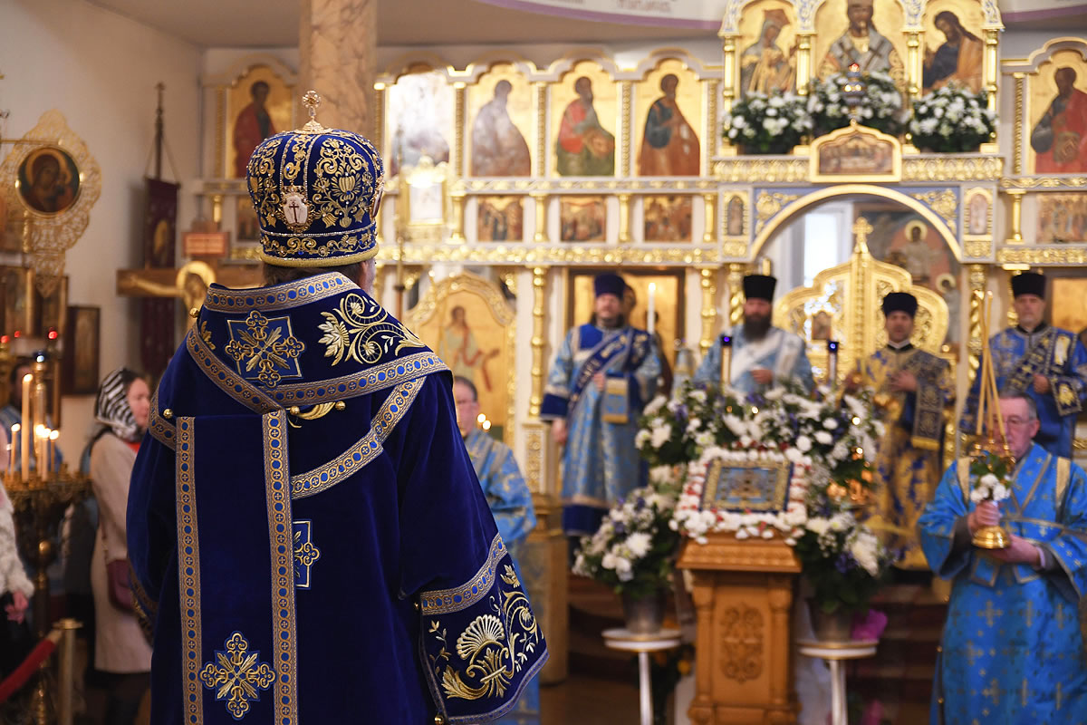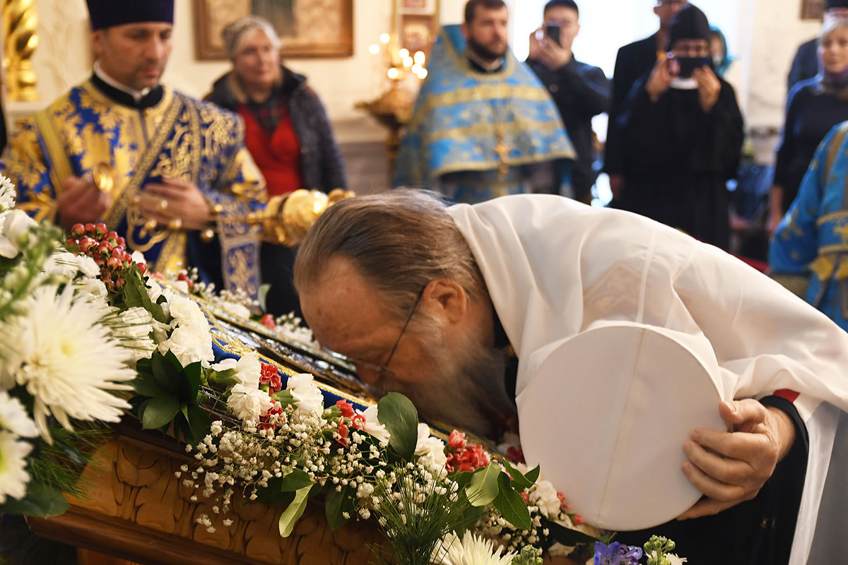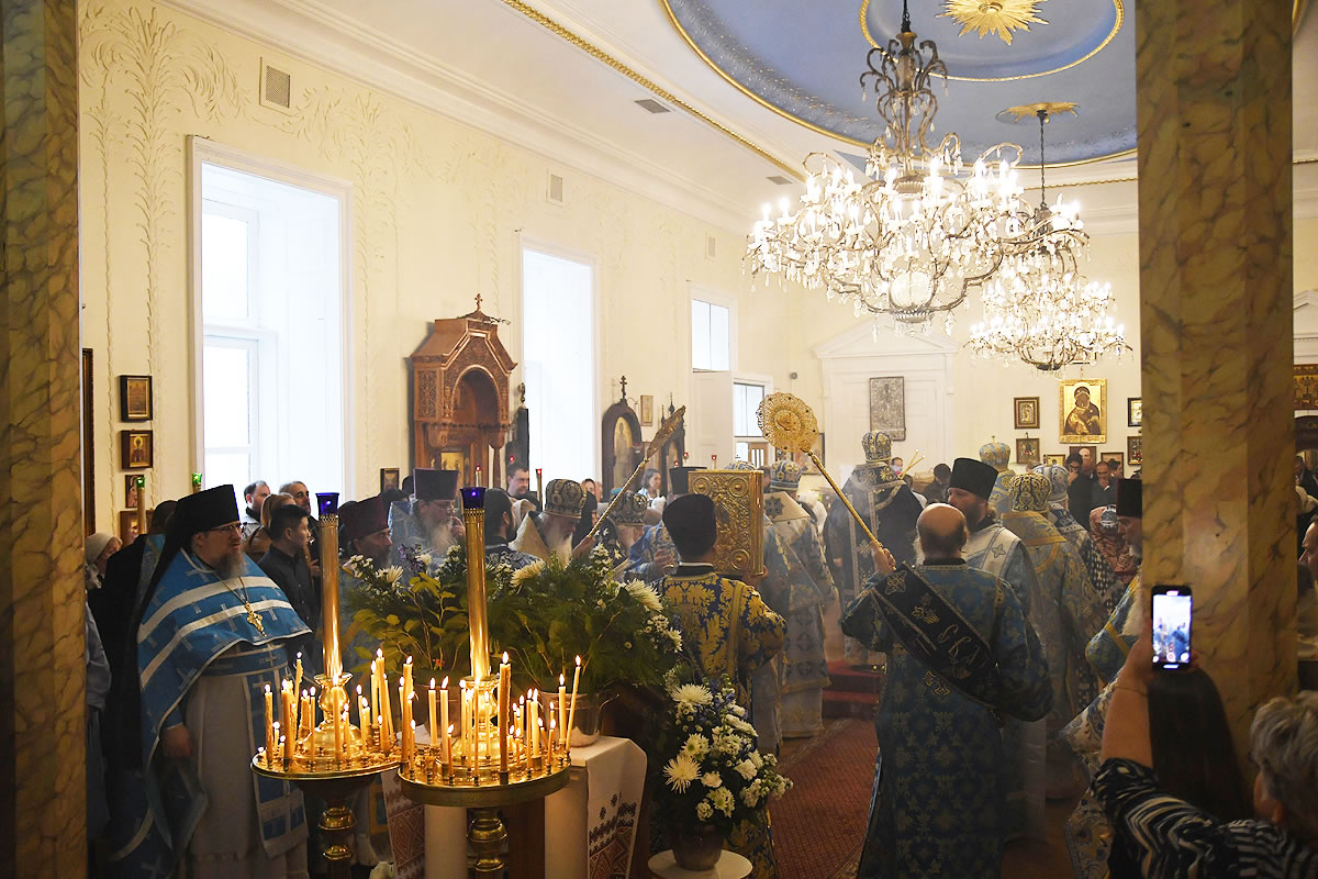 The festal Liturgy was simultaneously held under the aegis of two sacred icons: the Protectress of the Russian Diaspora – the Kursk Root Icon of the other of God – and the myrrh-streaming icon "Softener of Evil Hearts" from Moscow.