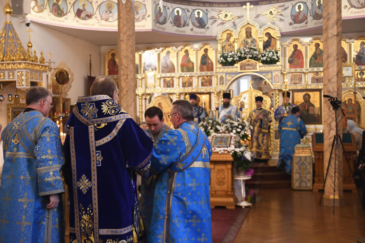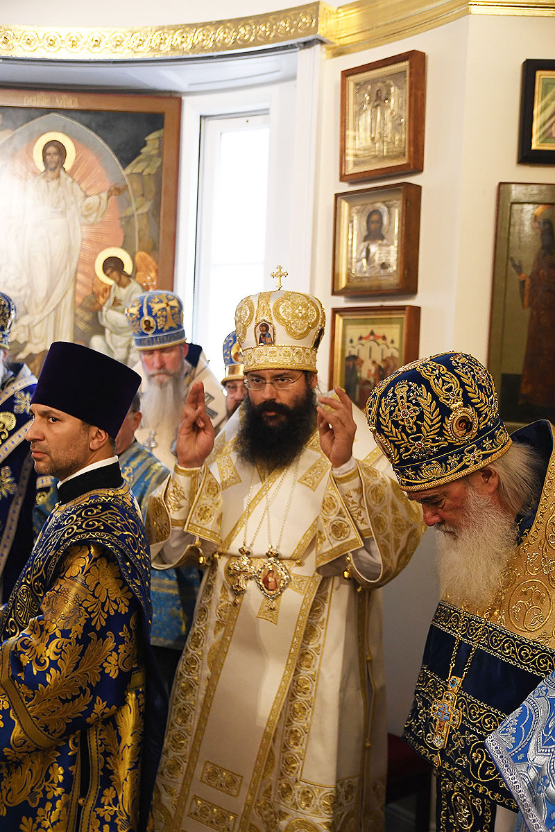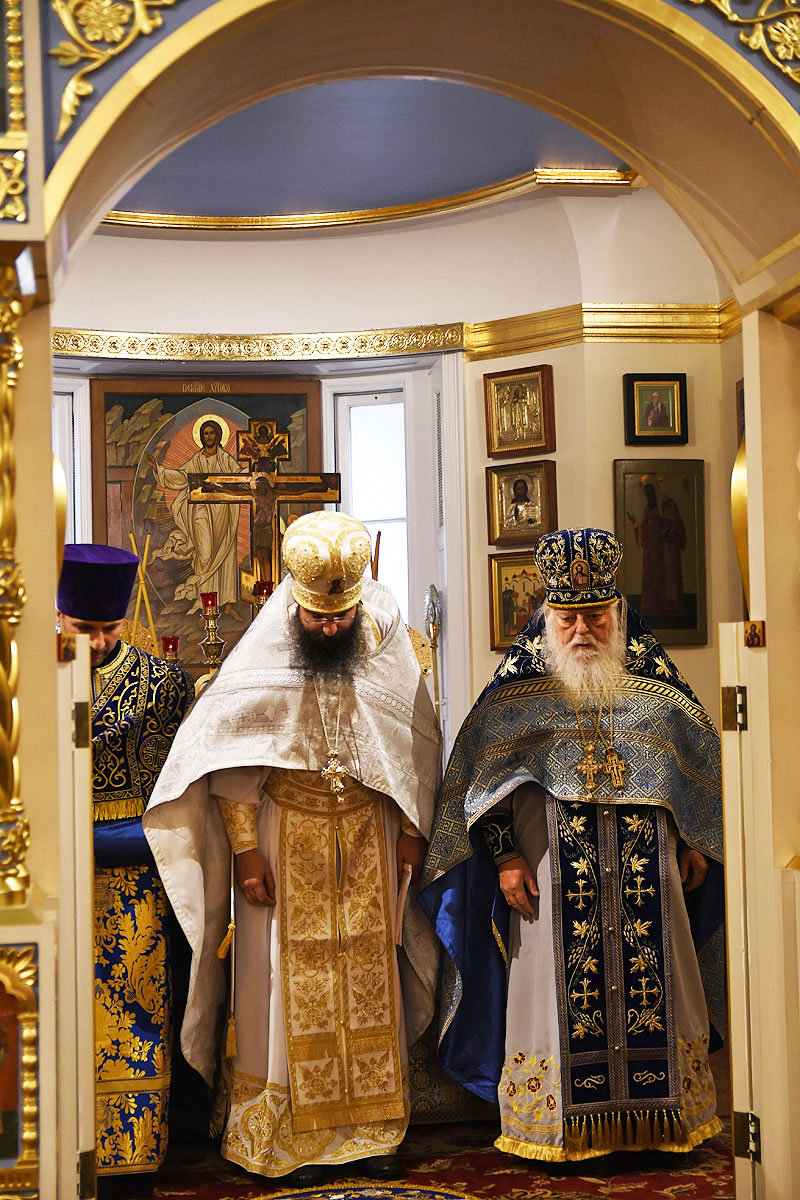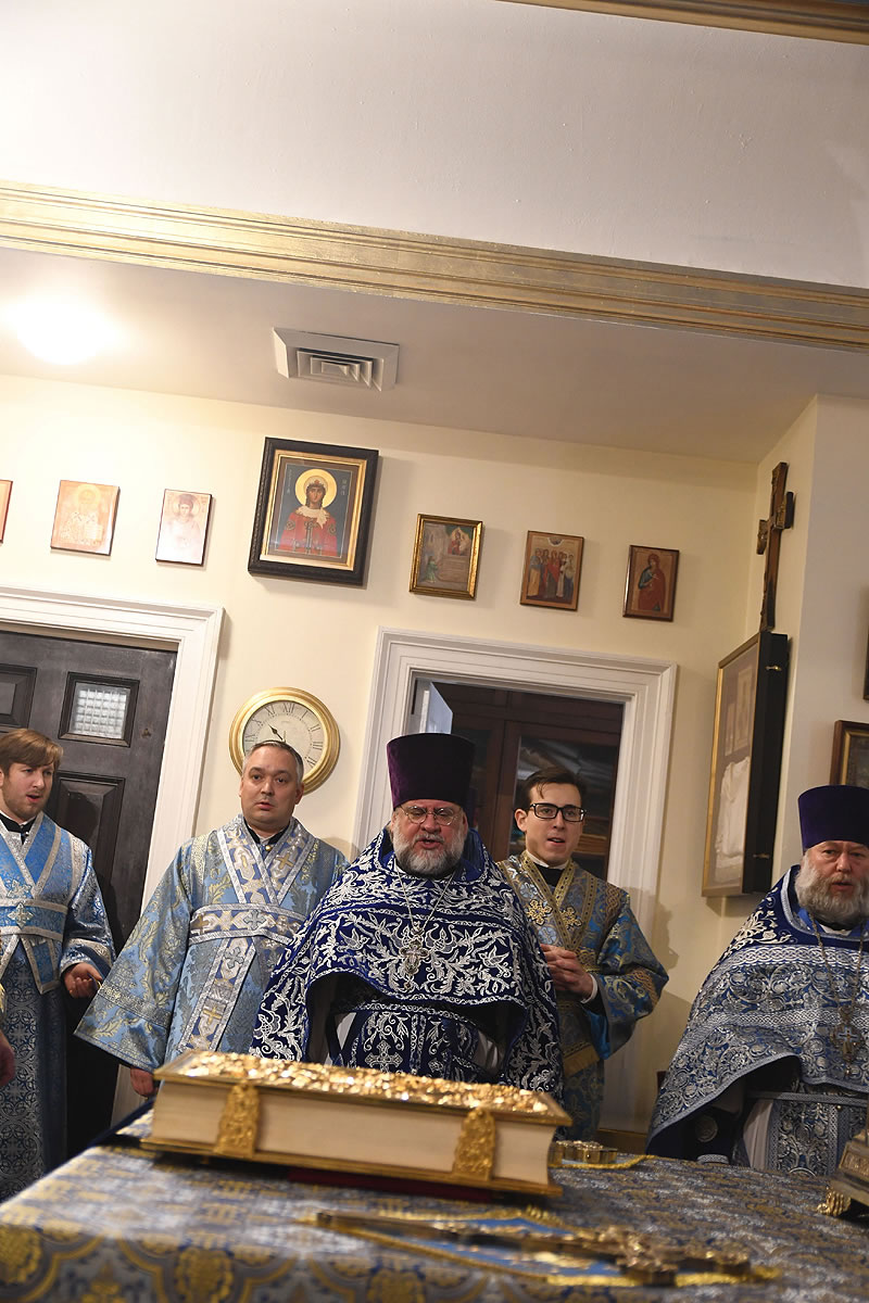 Praying in the church were Abbot Nicodemus (Balyasnikov; dean of St Nicholas Patriarchal Cathedral in New York City), Archpriest Vasily Yurina (cleric of Holy Myrrh-Bearers Church), Abbot Eutychius (Dovgan, Rector of St Nicholas Skete in Freehold, NJ), Abbot Zosimas (Krampis; Rector of the Synodal English Mission), and Deacon Dimitry Lisan (cleric of St Alexander Nevsky Cathedra in Howell, NJ).