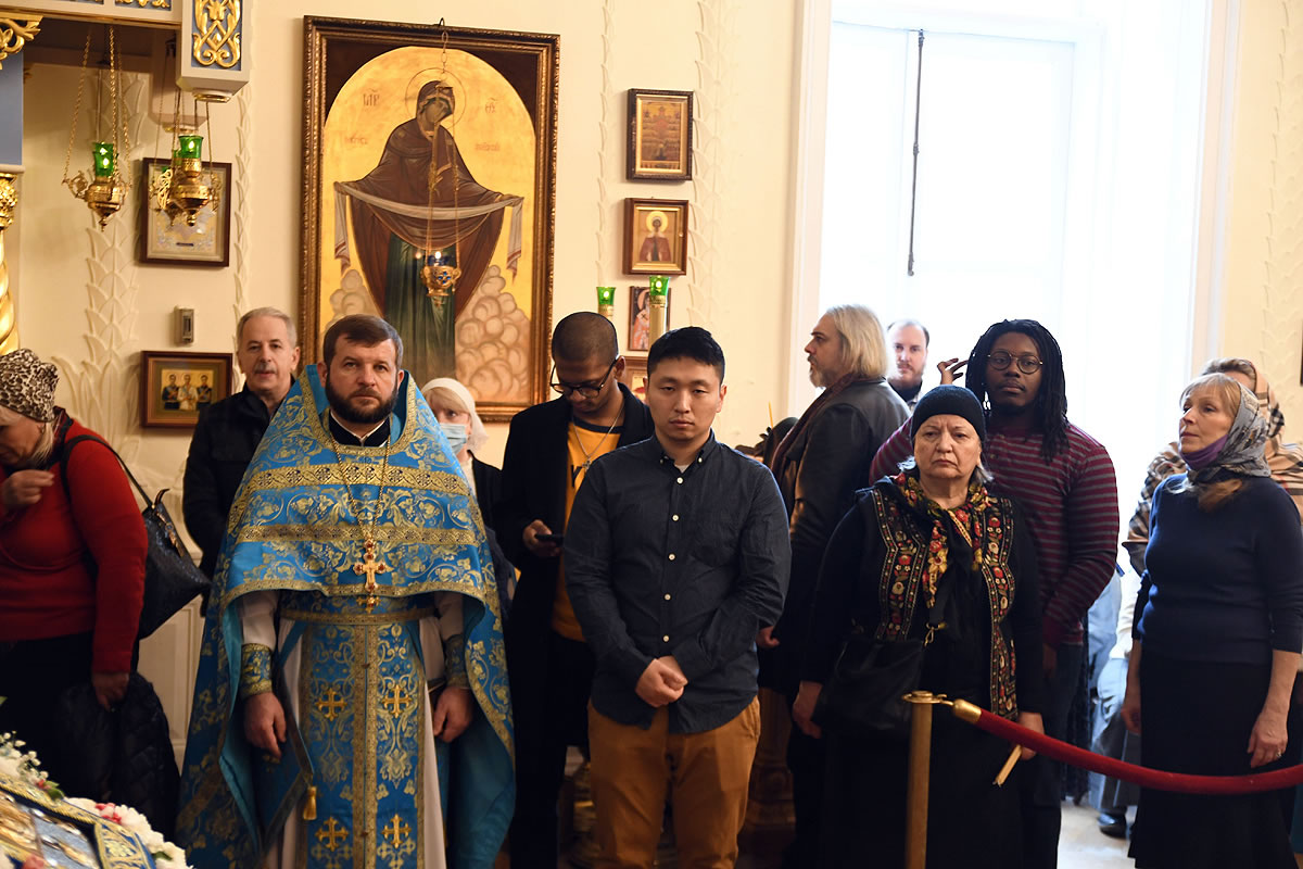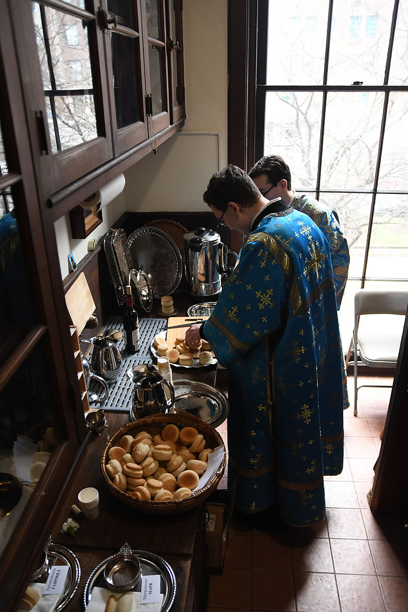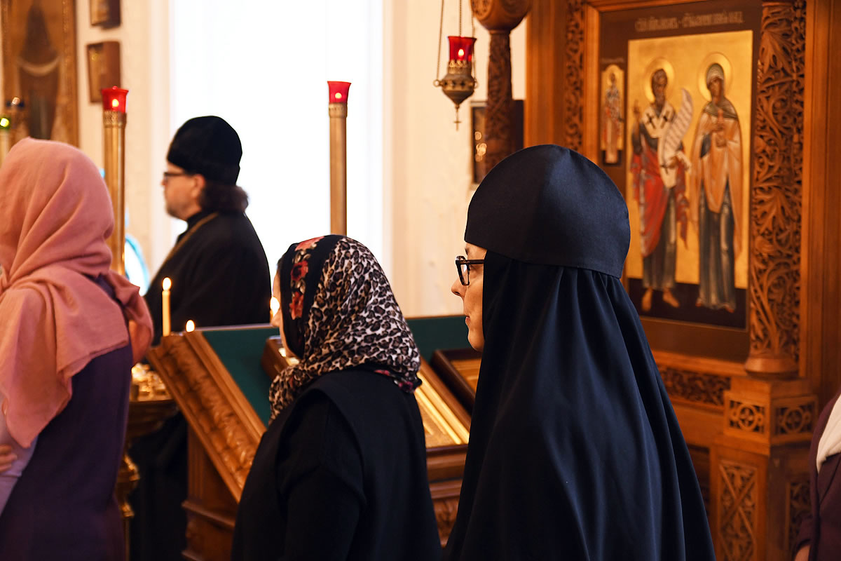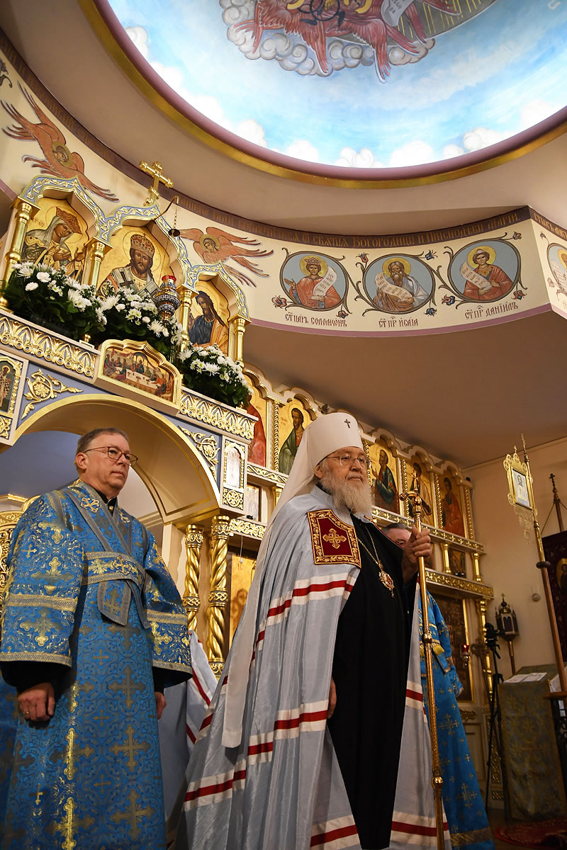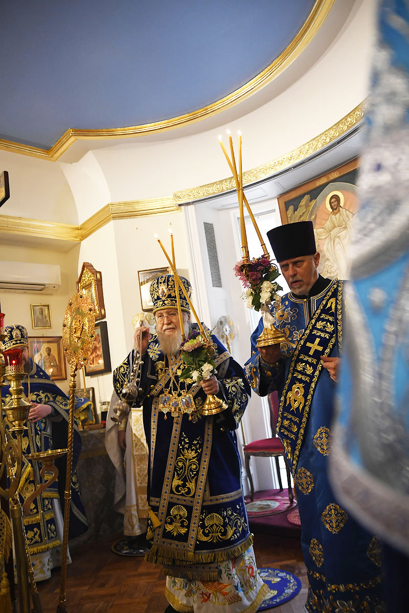 Praying in the church were Abbot Nicodemus (Balyasnikov; dean of St Nicholas Patriarchal Cathedral in New York City), Archpriest Vasily Yurina (cleric of Holy Myrrh-Bearers Church), Abbot Eutychius (Dovgan, Rector of St Nicholas Skete in Freehold, NJ), Abbot Zosimas (Krampis; Rector of the Synodal English Mission), and Deacon Dimitry Lisan (cleric of St Alexander Nevsky Cathedra in Howell, NJ).