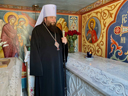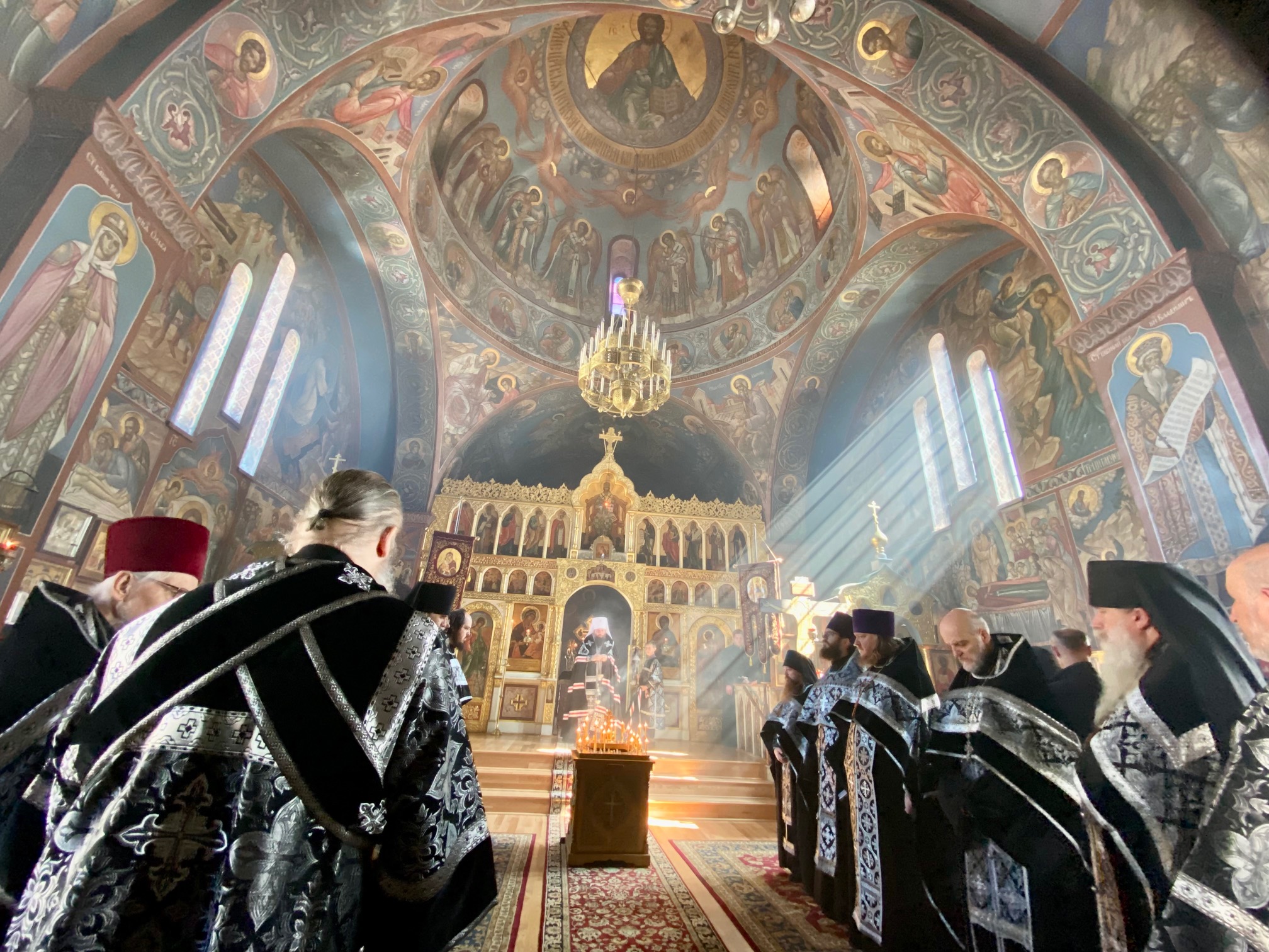 After a luncheon prepared by the monastic brethren, a pannikhida service was performed at Holy Trinity Cathedral, led by Metropolitan Nicholas along with the monastery clergymen, teachers of Holy Trinity Seminary and visiting clerics. Bishop Luke prayed in the altar. At the end of the service, the First Hierarch noted that performing memorial services for the dead always brings him consolation, and called upon everyone not to forget Metropolitan Laurus and the late brothers of the monastery, to visit their graves, pray for their repose, study their biographies and legacy and strive to emulate their example, preserving their memory with grateful love. His Eminence then proceeded to the crypt of the late Metropolitan Laurus, venerated the coffin and prayed for his repose.
