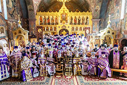 On Wednesday, 22 March, 2023, the Great Lenten Pastoral Retreat of the northern deaneries of the Eastern American Diocese of the Russian Orthodox Church Outside of Russia concluded with the celebration of the Liturgy of Pre-Sanctified Gifts at Holy Trinity Monastery in Jordanville, NY. The services were led by His Eminence Metropolitan Nicholas of Eastern America and New York, First Hierarch of ROCOR, along with His Grace Bishop Luke of Syracuse, the brethren and a multitude of diocesan clerics. Singing at the services was a unified choir of monastics and students of Holy Trinity Seminary under the direction of Deacon Nicholas Kotar and Priest Efrem Willmarth.