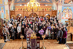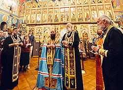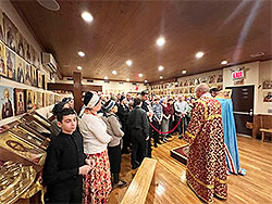 Serving alongside His Eminence were: Archpriest Serge Lukianov (dean of New Jersey), Archpriest George Zelenin (parish rector), Abbot Eutychius (Dovgan; abbot of St. Nicholas Skete in Freehold, NJ), Hieromonk Theognost and Priest Andrew Podymow (clerics of Holy Virgin Protection Church in Nyack, NY), Priest Alexei Klar (cleric of Holy Dormition Convent "Novo-Diveevo" in Nanuet, NY), and Deacon Andrei Logvinenko (parish cleric).