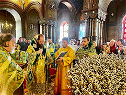 On the Sunday of the Entry of the Lord into Jerusalem, His Grace Bishop Irenei of London and Western Europe headed the festal Divine Services at the Cathedral of the Exaltation of the Cross in Geneva, Switzerland, co-served by the local clergy amongst an enormous crowd of faithful who had assembled for the Feast that marks the transition from Great Lent into the week of the Passion of our Savior Jesus Christ. The day before, His Grace had led the rite of General Unction, which was attended by the largest number of faithful in the history of the cathedral.