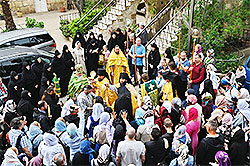 In the evening, the sisters of the Monastery of St Mary Magdalene with Abbess Elisabeth (Smelic) arrived in Bethany (al-Azaria) where they joined the sisters of the community for the feast. The Chief of the Russian Ecclesiastical Mission in Jerusalem of the Russian Orthodox Church Outside of Russia, Archimandrite Roman (Krassovsky), led all-night vigil with great compline. After the evening service, the sisters along with the pilgrims went to the tomb of the Righteous St Lazarus of the Four Days, which is not far from the monastery, to read the gospel story about Lazarus and venerate the tomb.