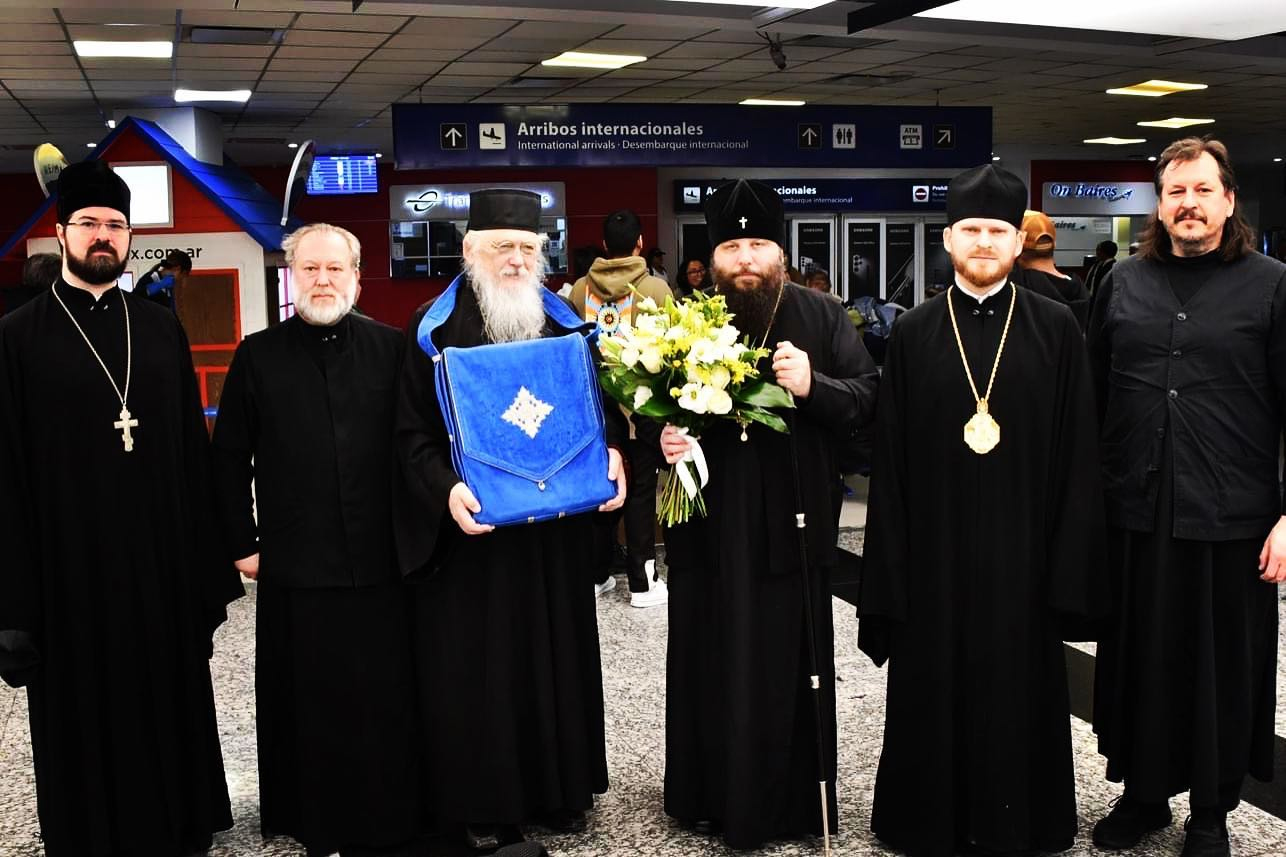 On Friday, 21 April, 2023, Bright Friday and the celebration of the Life-Giving Fountain of the Holy Theotokos, His Eminence Metropolitan Nicholas of Eastern America and New York, First Hierarch of the Russian Orthodox Church Outside of Russia, brought the Kursk-Root Icon of the Mother of God "of the Sign" to Buenos Aires, Argentina. His Eminence was greeted at the airport by His Grace Bishop John of Caracas and South America and His Grace Bishop Leonid of Argentina and South America of the Moscow Patriarchate.