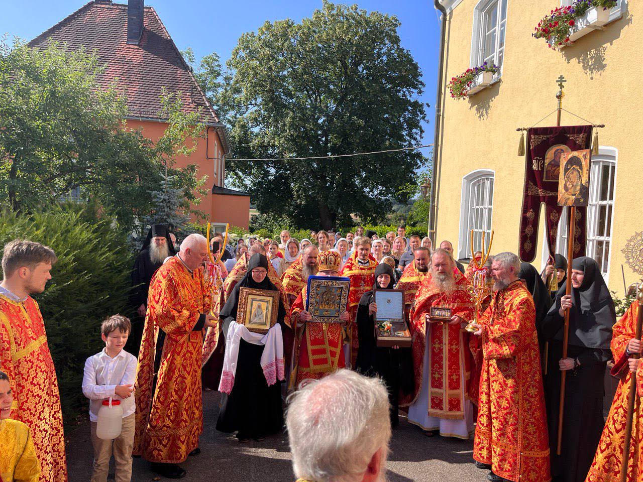 On Tuesday, July 18, 2023, His Eminence Metropolitan Mark of Berlin and Germany celebrated Divine Liturgy, and the day before, all-night vigil, in the Convent of St Elizabeth in Buchendorf, Germany. Grand Duchess Elizabeth was martyred 105 years ago. For the feast, the miraculous icon of the Kursk-Root Icon of the Mother of God was brought from Darmstadt.