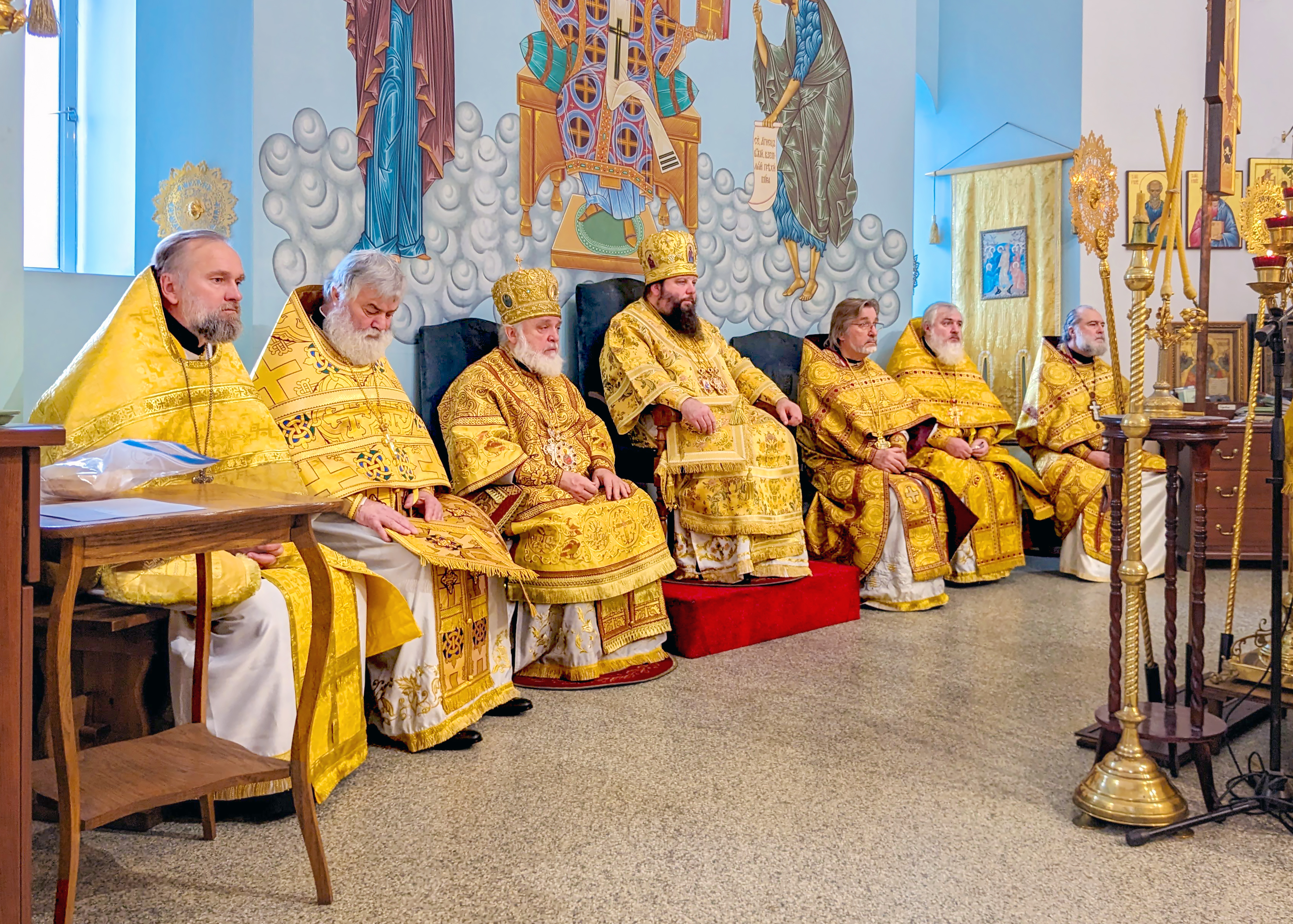 At the little entrance, Deacon Dmitry Matenin was awarded the right to wear a double orarion, for his zealous service to the Church of Christ, which was presented to him by Metropolitan Nicholas.