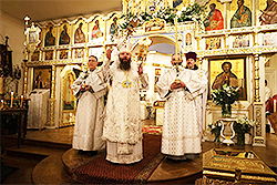 During the divine services, which were held under the aegis of the Miracle-working Kursk Root Icon of the Mother of God, His Eminence was joined by cathedral clerics: Cathedral Dean Archpriest Andrei Sommer; Archpriest Seraphim Chemodakov; Hieromonk Theognost (Kogan); Hieromonk Laurus (Solomonov; cleric of Our Lady "The Inexhaustible Chalice" Church in Brooklyn, NY), along with Protodeacon Nicolas Mokhoff and Protodeacon Serge Arlievsky.