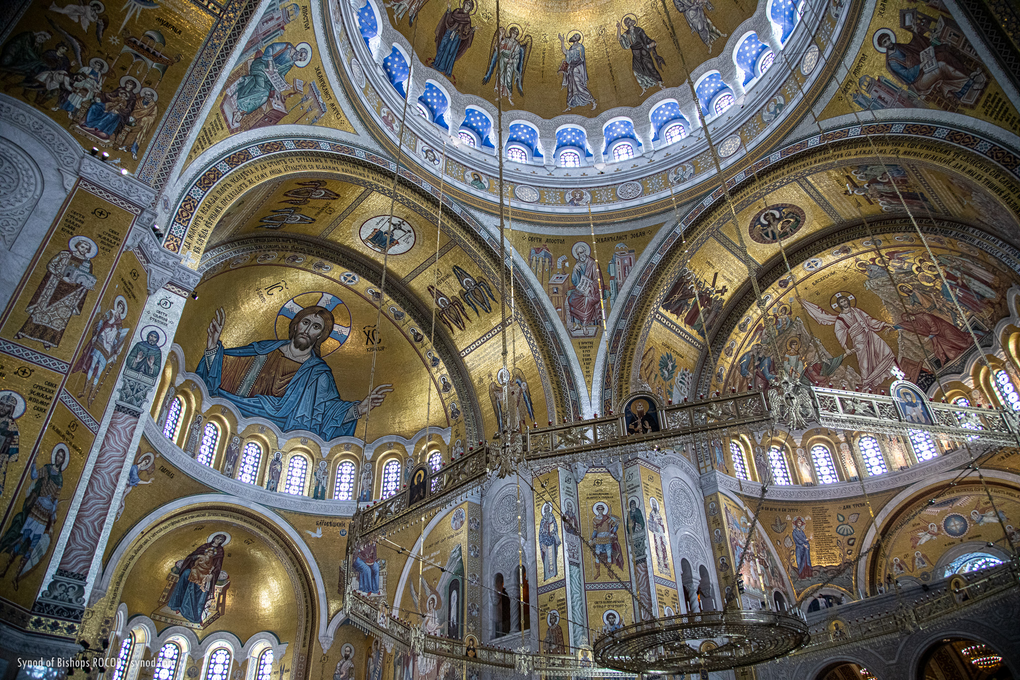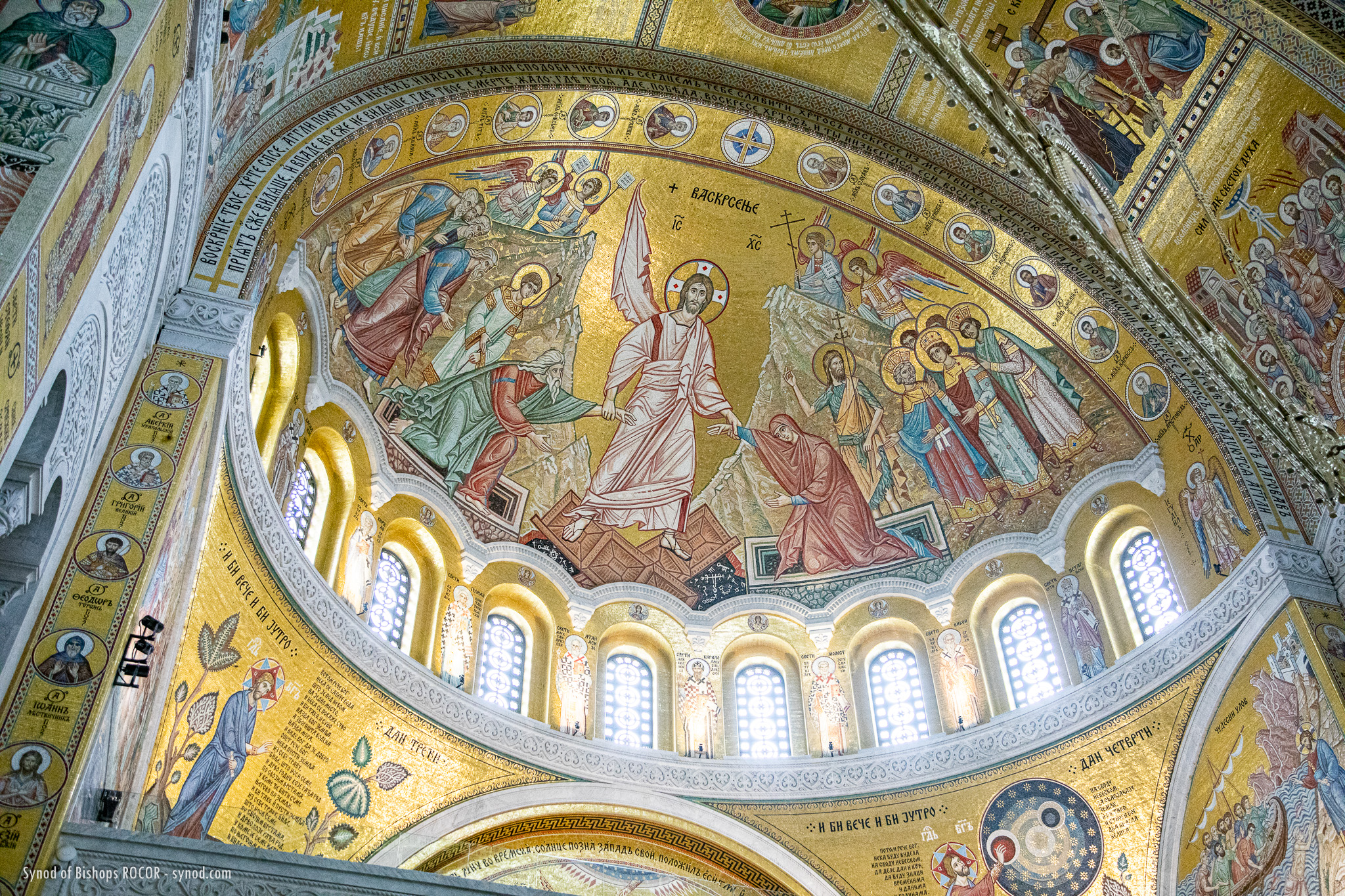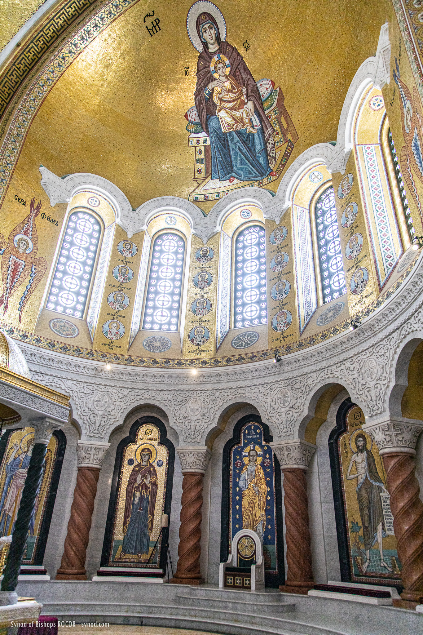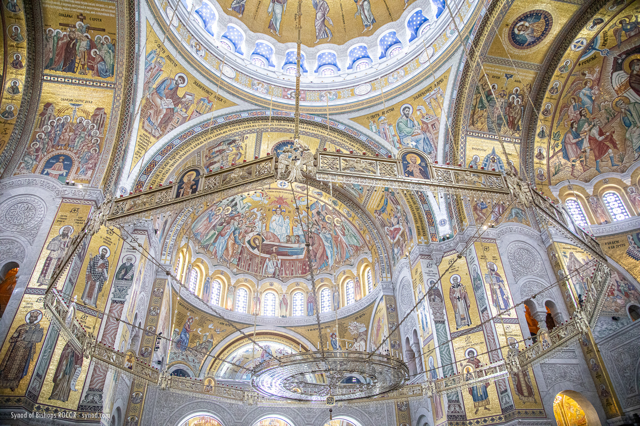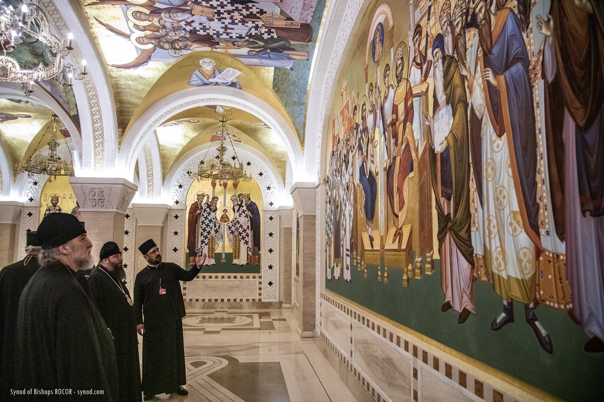 Metropolitan Nicholas is accompanied by members of the Synod of Bishops: His Eminence Metropolitan Mark of Berlin and Germany, His Eminence Archbishop Gabriel of Montreal and Canada, His Eminence Archbishop Peter of Chicago and Mid-America, His Grace Bishop Irenei of London and Western Europe, His Grace Bishop Job of Stuttgart, as well as Protopriest Serafim Gan, Chancellor of the Synod of Bishops and Secretary of the First Hierarch of ROCOR, as well as Archpriest Luka Novakovic and Archpriest Ljubo Milosevic, cleric of the Eastern American Diocese, Secretary of the Diocese of Mid-America, Archpriest Gregory Joyce, and Reader George Konev.