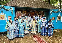 On September 11-12, Metropolitan Nicholas visited the missionary community of St Innocent, Metropolitan of Moscow and Kolomna, Enlightener of America, in Bucksport, Maine, and St Alexander Nevsky Memorial Church in Richmond, Maine. At the minor entrance of Divine Liturgy in St Alexander Nevsky Church, His Eminence praised the work of Archpriest Chad Williams, awarding him the right to wear the mitre on the occasion of his 40th anniversary of pastoral service.