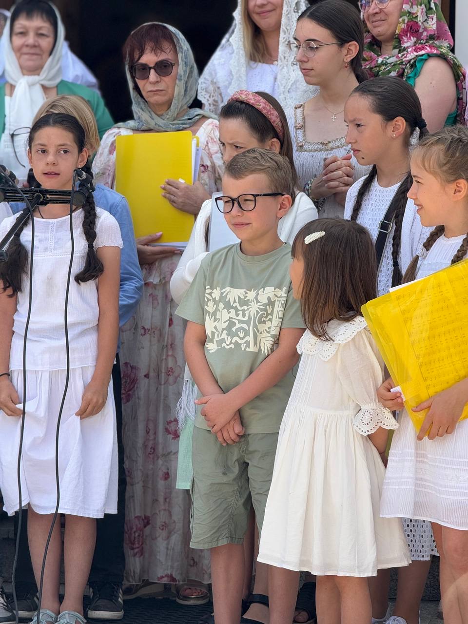 A festive lunch took place at the parish residence under the summer sun, during which the youth and children of the parish presented a wonderful musical concert in honor of the patron saint's feast. Bishop Iriney will remain in Luxembourg until the end of the weekend; on Sunday he again officiated at Divine Liturgy, after which he held a spiritual discussion with the parish youth group.