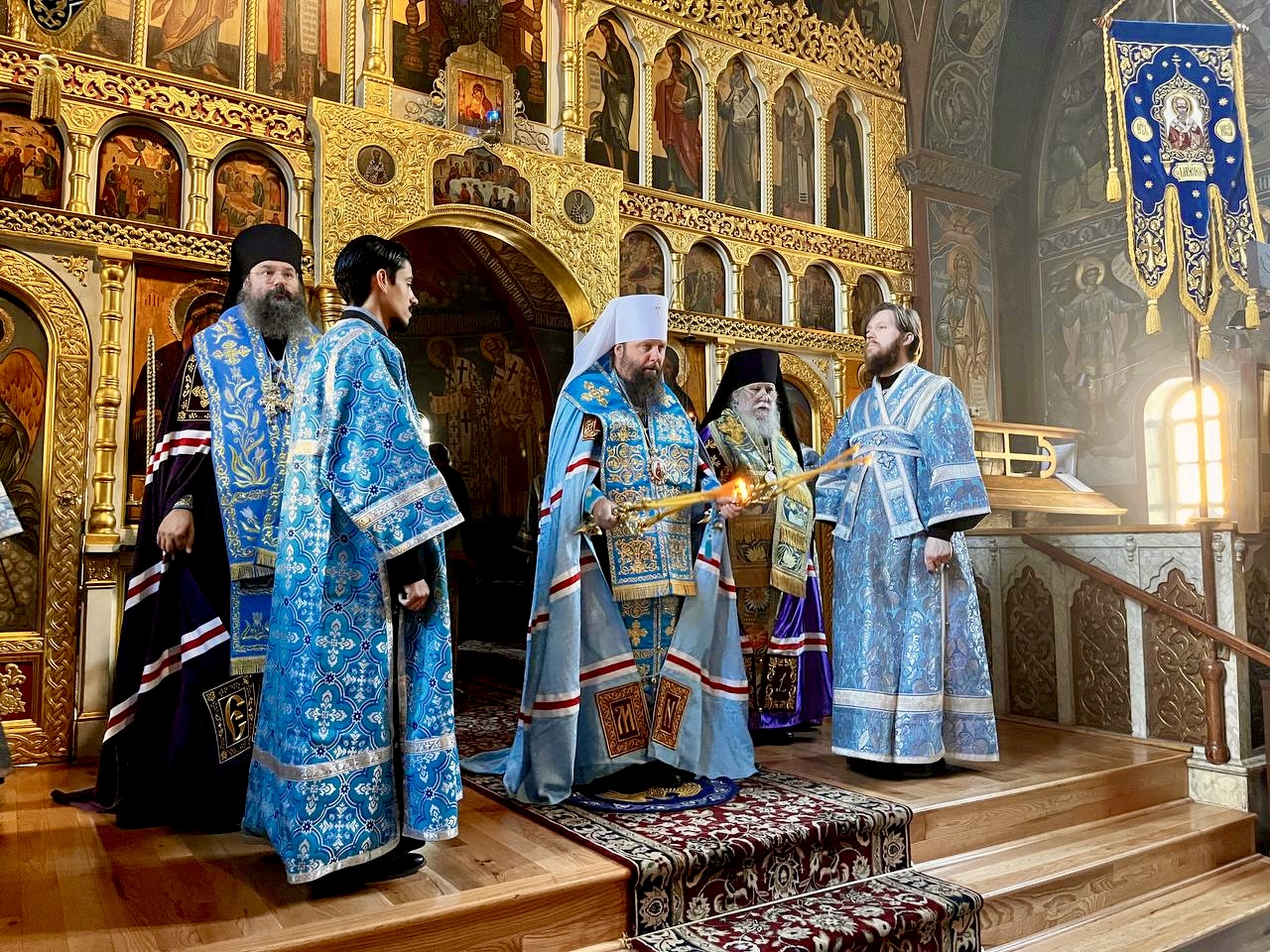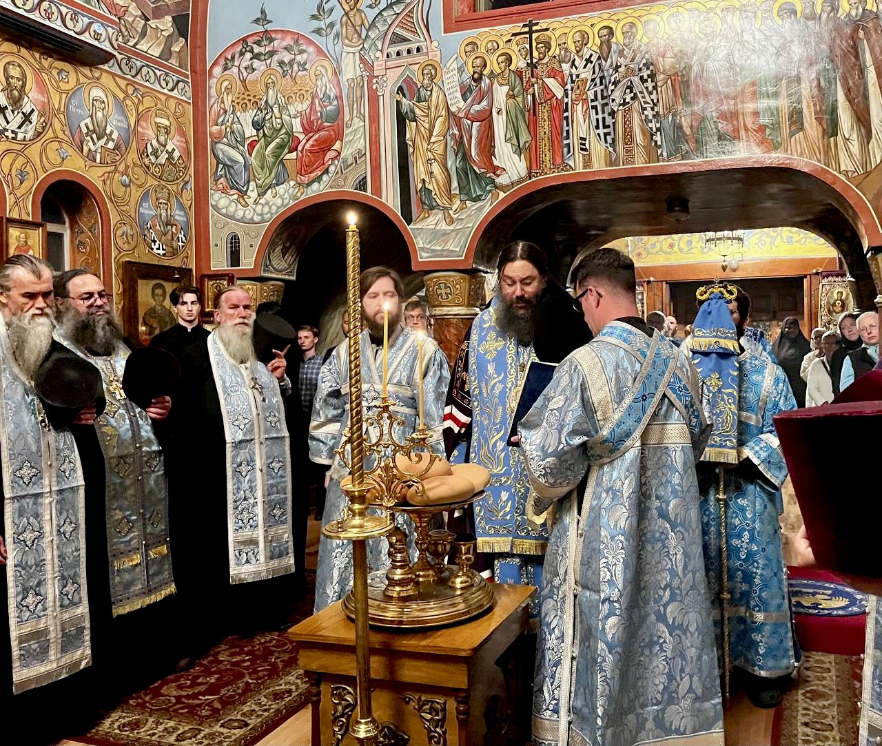 The pilgrimage to the Holy Trinity Monastery during the civil holidays that mark the end of summer in the USA continued with a Divine Liturgy performed in the hierarchical rite on Monday morning.