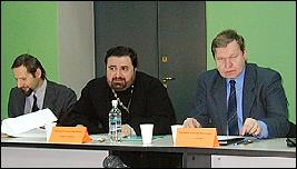 A conference was held on 13-16 November 2002, in the Synodal Library of the Moscow Patriarchate (Andreev Monastery, Moscow), devoted to questions of the history of the Russian Orthodox Church in the 20th century. One year ago, a similar conference was held in Sentendra (Hungary). With the blessing of their hierarchs, clergymen of the Russian Orthodox Church (Moscow Patriarchate) and the Russian Orthodox Church Outside of Russia participated, as well as representatives of the historical academia. The Conference heard 25 lectures and reports from scholars from Russian (Moscow, St. Petersburg, Kazan, Nizhny-Novgorod, Novosibirsk), Latvia, Germany, the USA (Washington, DC, San Francisco and Los Angeles, CA, and Jordanville, NY).