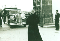 Archpriest Mitrofan Znosko in front of the hearse with the body of AI Rusin at the gates of Ben M�sik Cemetery, 1956