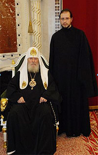 Deacon Eugene Kallaur and His Holiness Patriarch Alexy II of Moscow and All Russia in the Christ the Savior Cathedral after Liturgy and the signing of the Act of Canonical Communion, May 17, 2007.