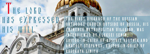 The First Hierarch of the Russian Orthodox Church Outside of Russia, His Eminence Metropolitan Hilarion of Eastern America and New York, who participated in the Council of Bishops and Local Council [Pomestny Sobor] of the Russian Orthodox Church, was interviewed by Aleksei Senin, Editor-in-Chief of Russkiy Vestnik and Anatoly Stepanov, Editor-in-Chief of Russkaya Liniya on February 2, 2009.�