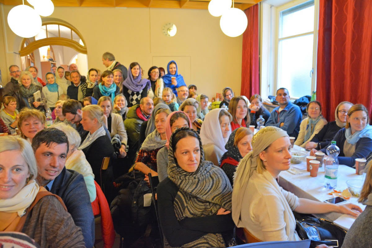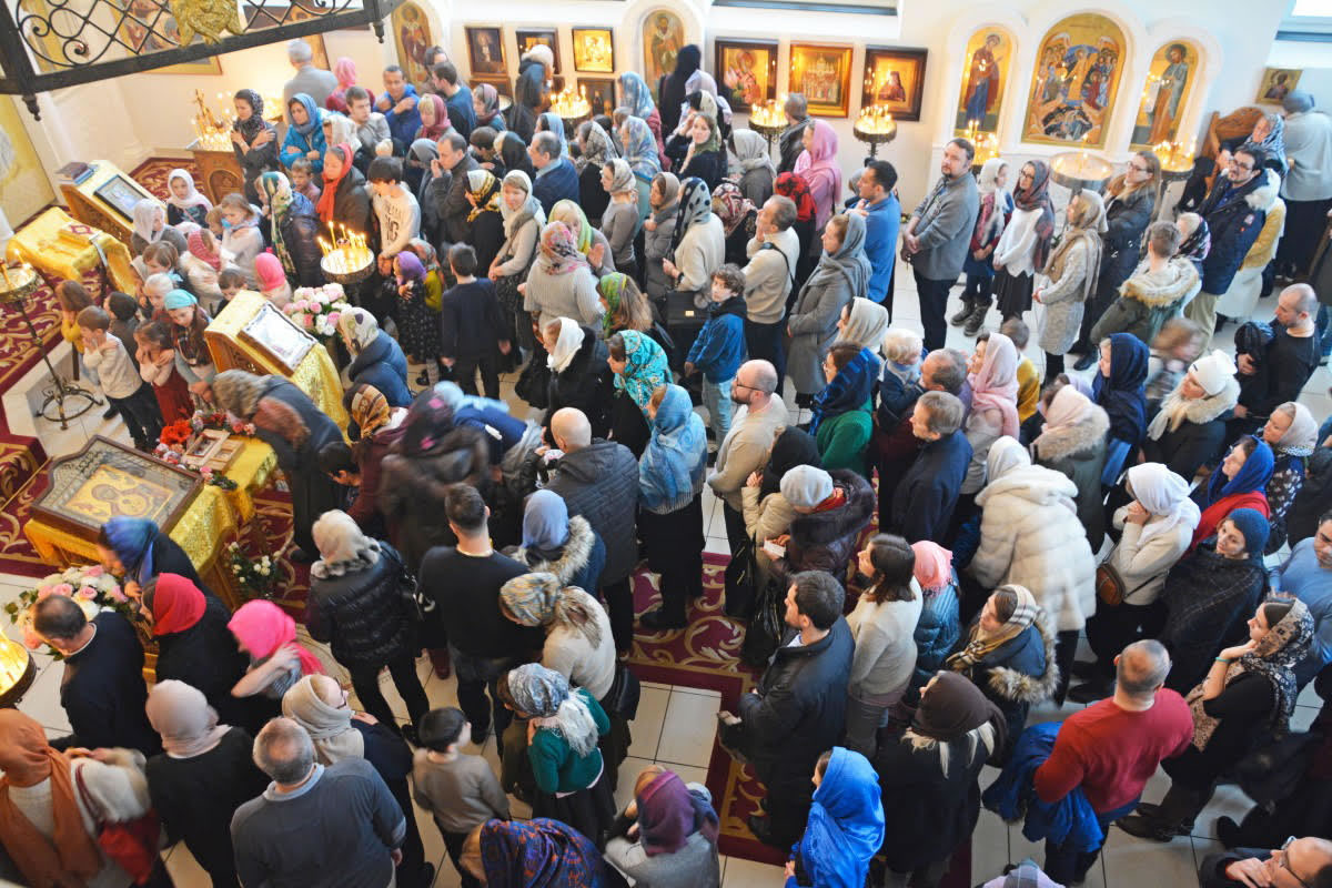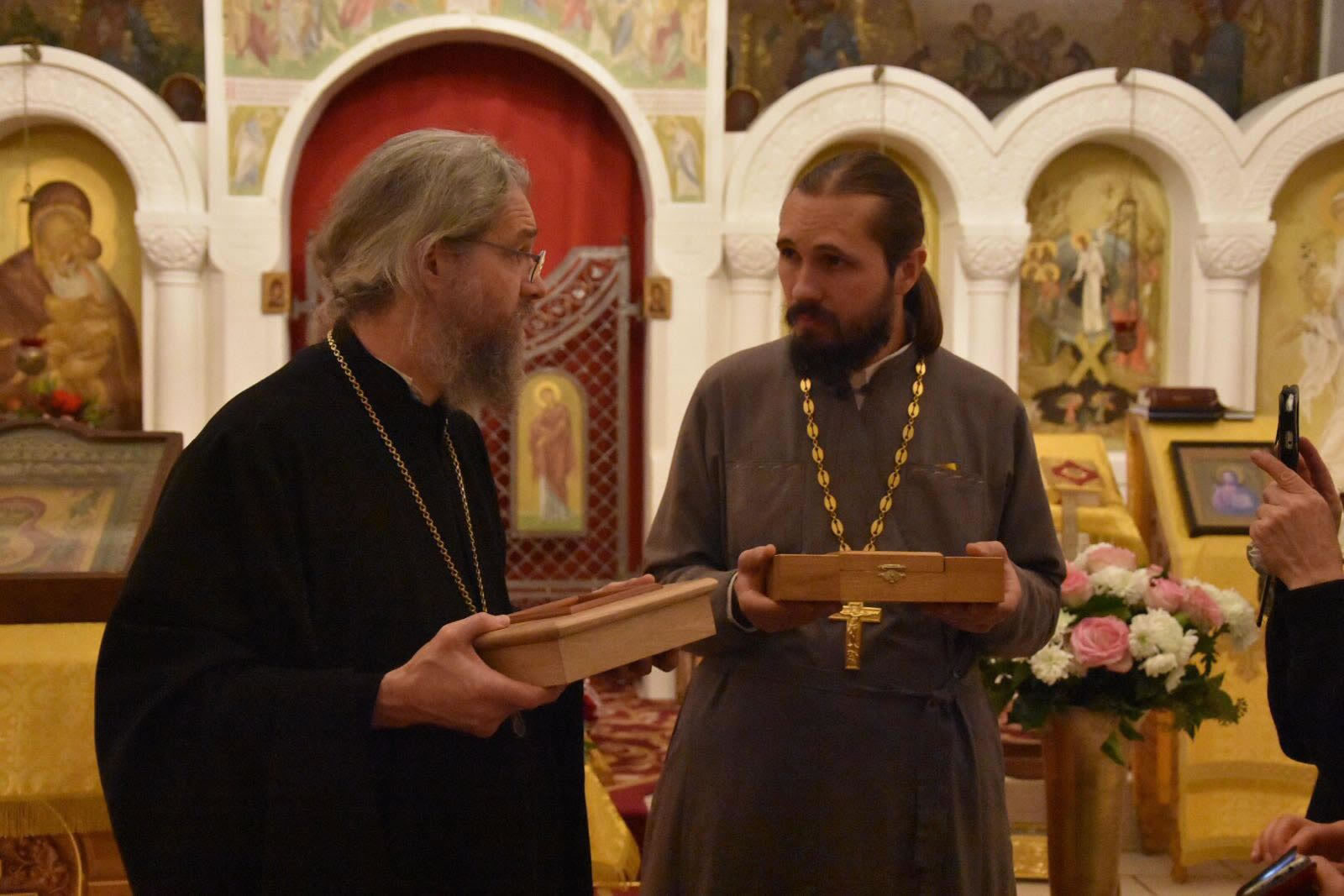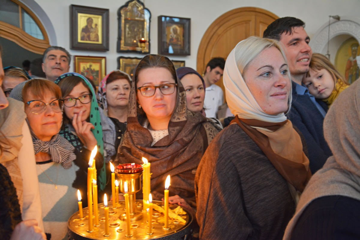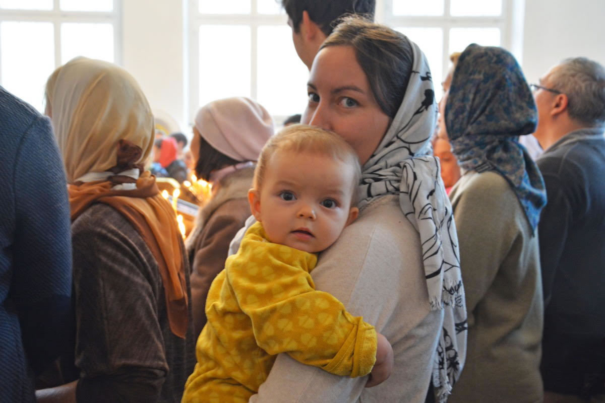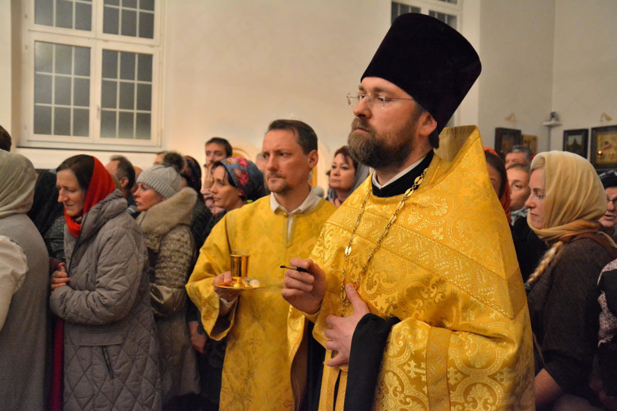 The relics were brought to the church on Saturday evening and greeted by Protopriest Mikhail Zeman, Rector of the church, along with Deacon Daniel Scherer and the church’s choir. A large gathering of faithful from the neighboring Serbian parish along with worshipers from Geneva, Bern, Lausanne, Milan, Cologne and other European cities were on hand. After polyeleos, the worshipers were anointed with oil from the crypt of St John. Two priests listened to confessions from the very beginning of evening service until deep into the night. Parishioners say that there were as many worshipers at the service as during Pascha.