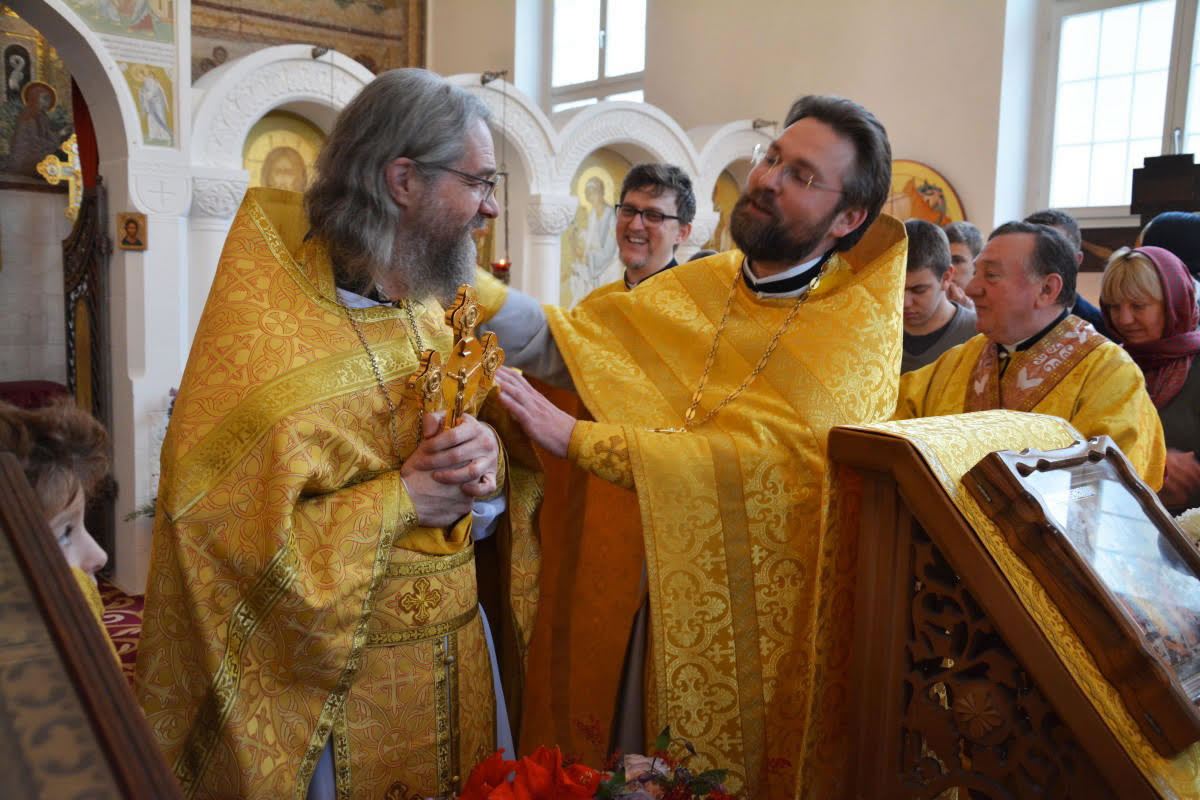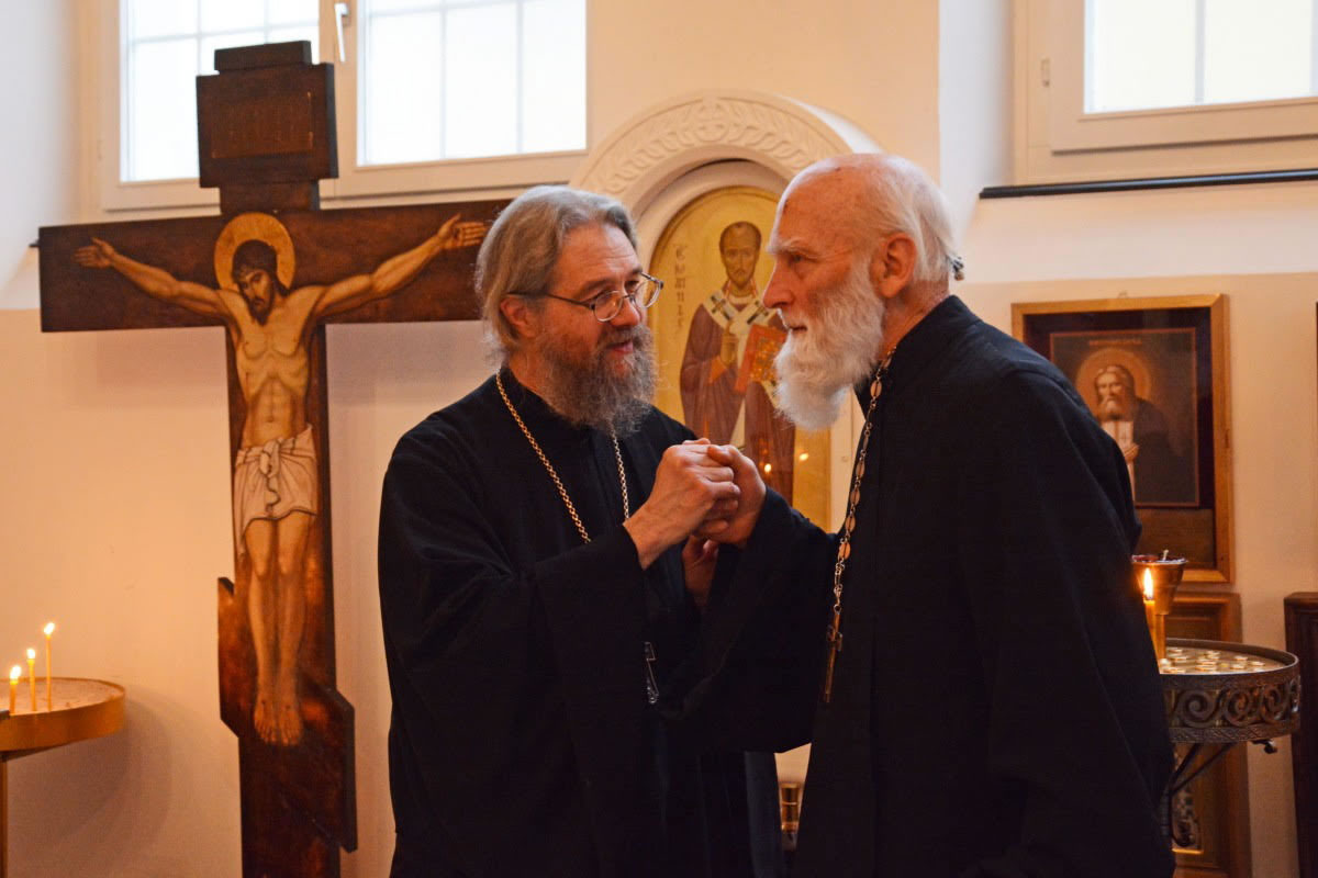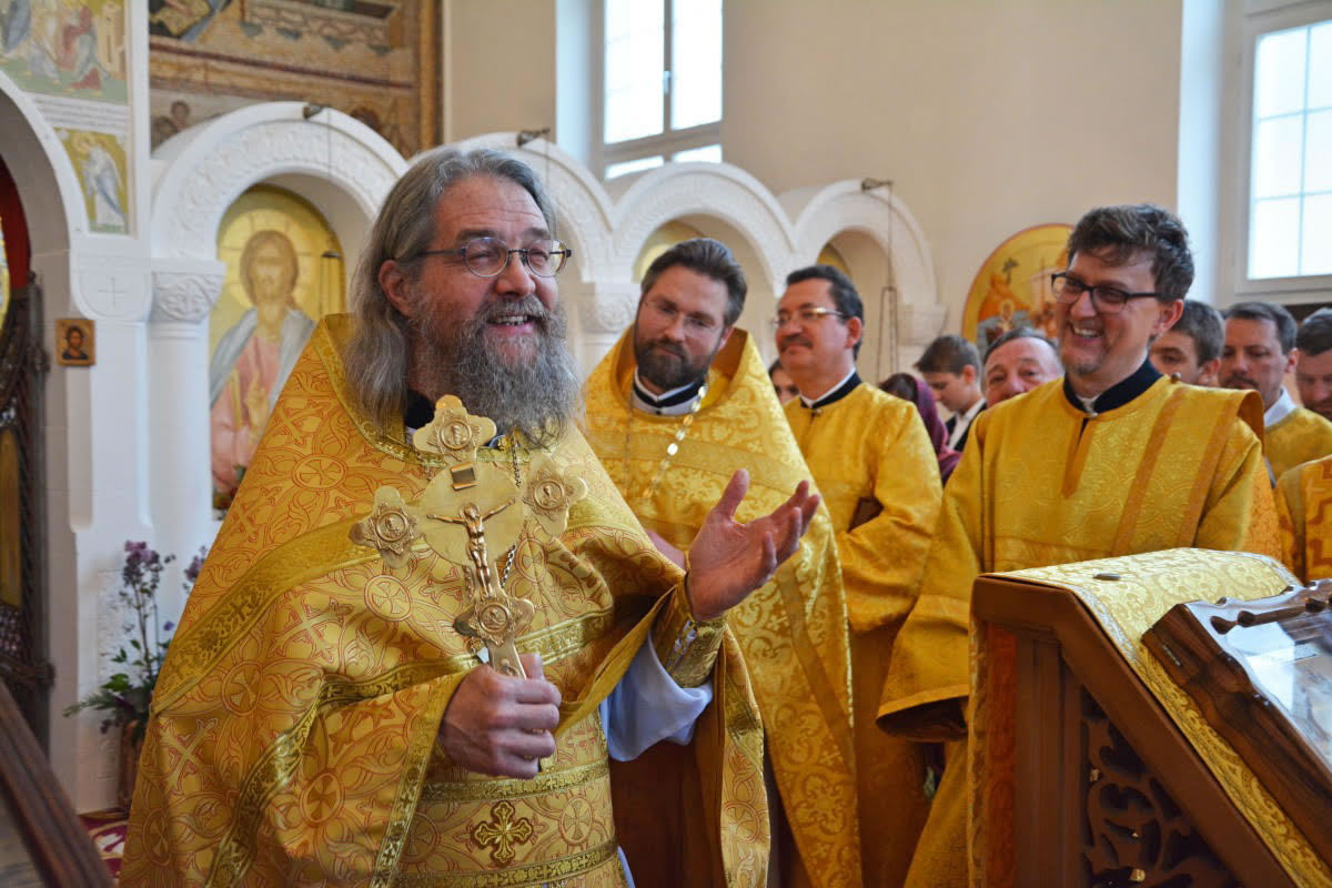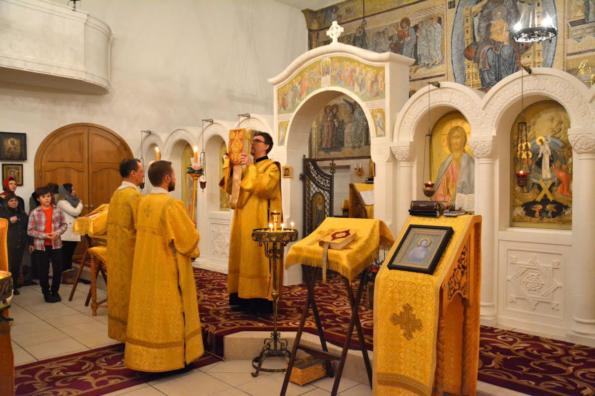 Protopriest Peter Perekrestov, Senior Priest of San Francisco’s Cathedral of the Mother of God “Joy of All Who Sorrow,” celebrated Liturgy the next day, along with Protopriest Mikhail Zeman and Hieromonk Siluan (Yaroslavtsev) from Milan’s Church of SS Sergius, Seraphim and Vicente. Deacon Daniel and Hierodeacon Epifany of Holy Trinity-St Sergius Lavra also served. Protopriest Peter Sturm of Protection Church in Zurich arrived at the end of service along with a group of his parishioners. A moleben to St John was performed after Liturgy.