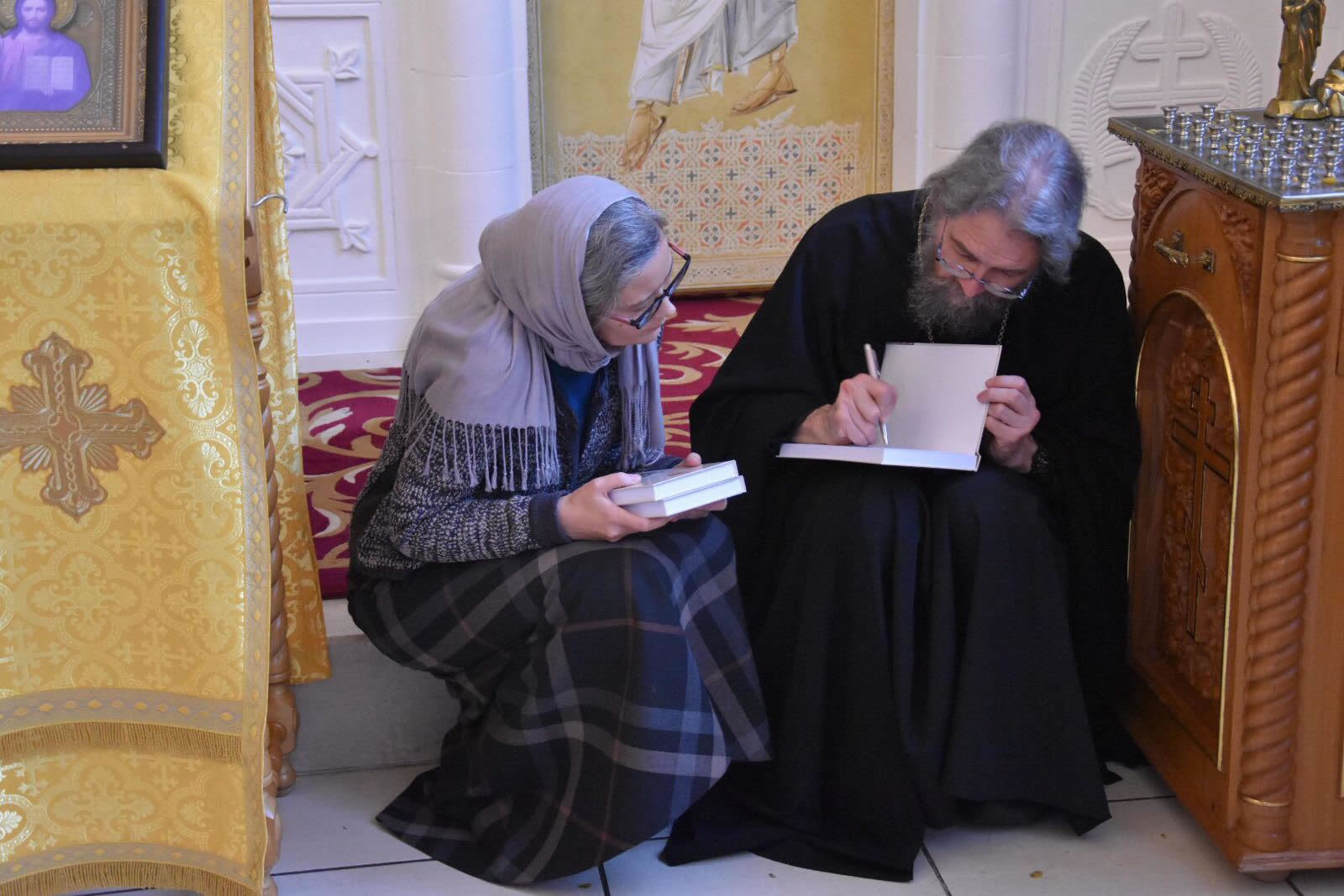 Fr Peter then spoke with the parishioners at a trapeza luncheon about the life of Bishop John, and presented his new book on the saint. His first book on St John was biographical, while the second, titled Pastor. Teacher. Friend, offers touching and endearing memories of others. “Everyone can find something close to his heart from this book,” said the author. The book includes events in St John’s life and moments from the divine services performed by this man of God. Did the bishop ever sleep? How could he find time to answer thousands of letters, what perturbed other teachers about him at the seminary he taught in when his students love him so? These and other little-known details were discussed by Fr Peter, who tried to “present the image of a contemporary saint as seen in the eyes of various people.” Documentary footage of St John was also shown.