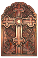 In the Munich Cathedral of the Russian Orthodox Church Outside of Russia, a small piece of the True Cross of the Lord is kept, though it is very small. It hails from the Holy City of Jerusalem, from the reliquary that contains the Cross. This reliquary was seized when Jerusalem fell to the Persians in 614. In 624, the Byzantine Emperor Heraclius defeated the Persians and returned this holy item to Jerusalem, where it has remained to this day. In 2002, Archbishop Mark of Berlin and Germany received this small portion of the Cross from the Jerusalem Patriarchate which broke off during cleaning. It is immersed in wax, under glass in the middle of a carved cross.