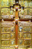 In the town of Limberg, Germany, on the River Lahn, is a Byzantine�stavroteka�(from the Greek�stavros, or cross) which contain two large pieces of the Cross of the Savior. Around these two cross-shaped fragments are small doors with sections for other relics. The stavroteka�was taken by the Crusaders who destroyed Constantinople in 1204 and looted a great number of holy items. The stavroteka�is now on exhibit in the Diocesan Museum of Limburger Cathedral. There exists a film on the Limberger�stavroteka�with details and commentaries in German. �
