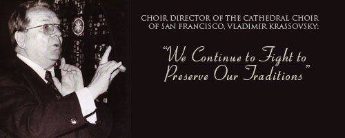 On Sunday, March 11, 2012, San Francisco's Holy Virgin Cathedral Choir will present a Concert of Sacred Choral Music of the Russian Orthodox Church at the Star of the Sea Catholic Church (Geary Boulevard and 8th Avenue) at 2:00 pm. The Editors of Russkaya Zhizn [Russian Life] interviewed its Choir Director, Vladimir Vladimirovich Krassovsky.