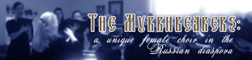 The Holy Myrrhbearers Women�s Choir, under the direction of Eugenia Temidis, is a rare phenomenon in the Russian diaspora. Women�s choirs usually form in convents; a lay women�s choir has never existed in the Russian emigration.