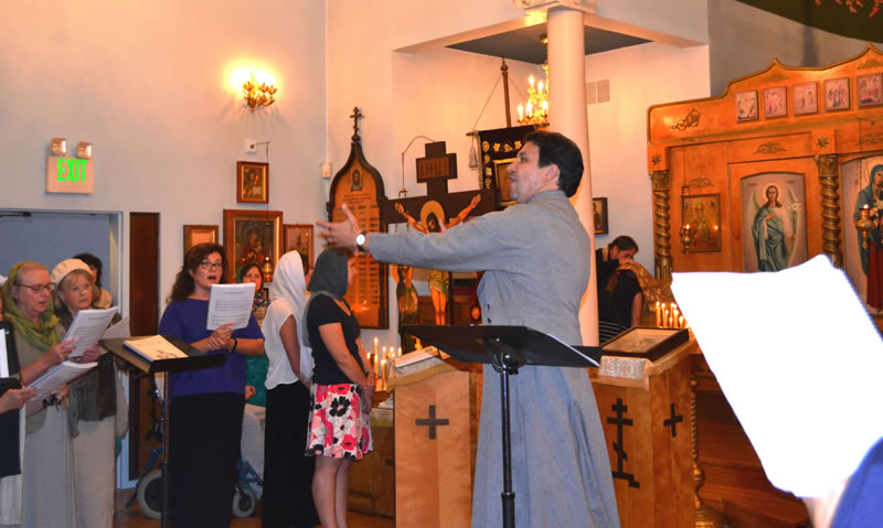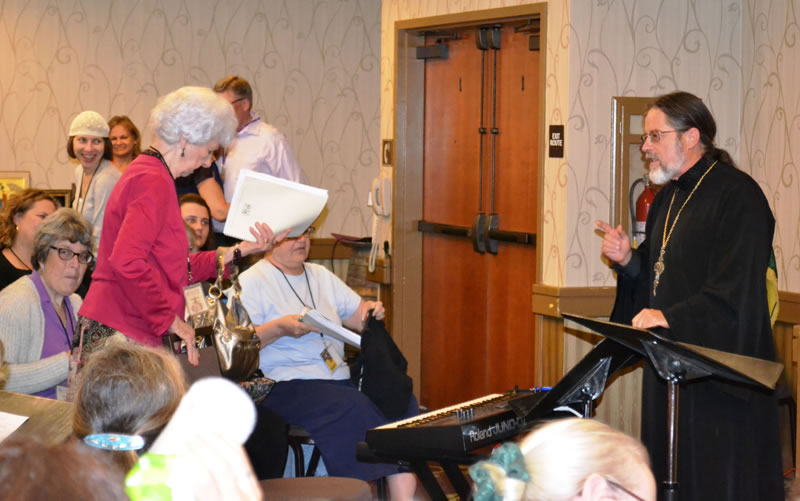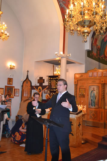 Speaking were Maestro Peter Yermikhov, a professional choir director. Professor Yermikhov held a series of master classes in which he offered intensive work with four choir directors, Gregory Kotar of Seattle, Eugenia Temidis of New York, Sergei Furmanov of Chicago and Nicholas Caster of Santa Rosa, preparing them for directing certain compositions for the scheduled ceremonial hierarchal services.