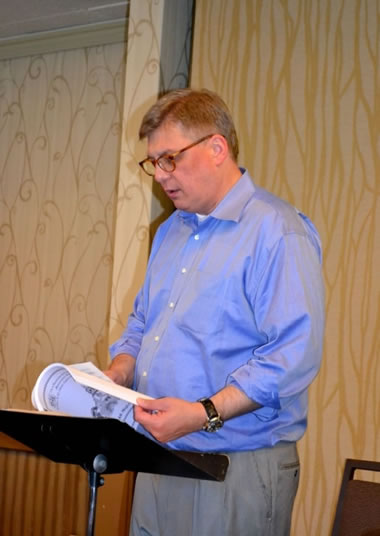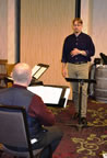 Nicholas Caster, choir director of St Seraphim Church in Santa Rosa (OCA), read a very engaging lecture on the arrangement of Russian liturgical music in the English language. He presented a series of examples of various translated texts and demonstrated how they were either successful or not given the melody.